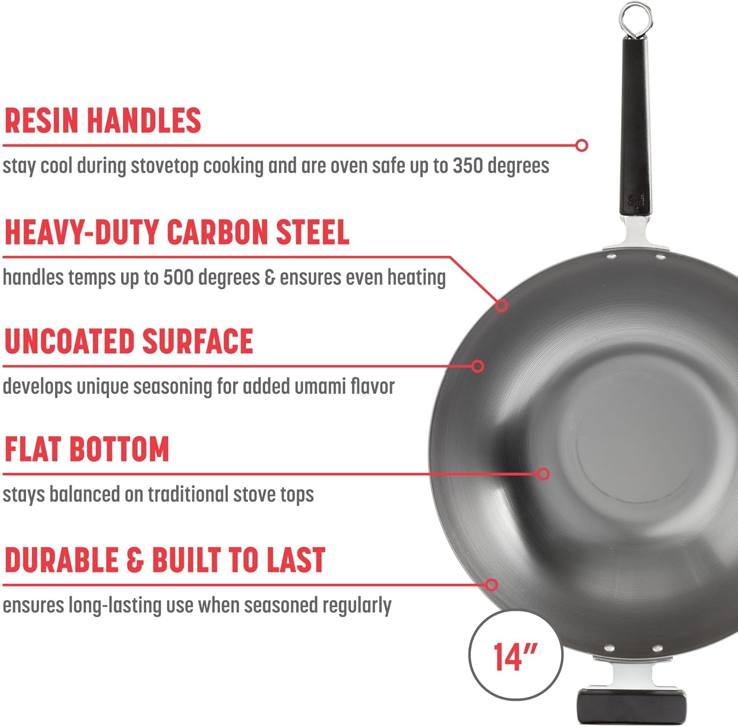 JOYCE CHEN Professional Series 14-Inch Carbon Steel Wok with Phenolic Handles