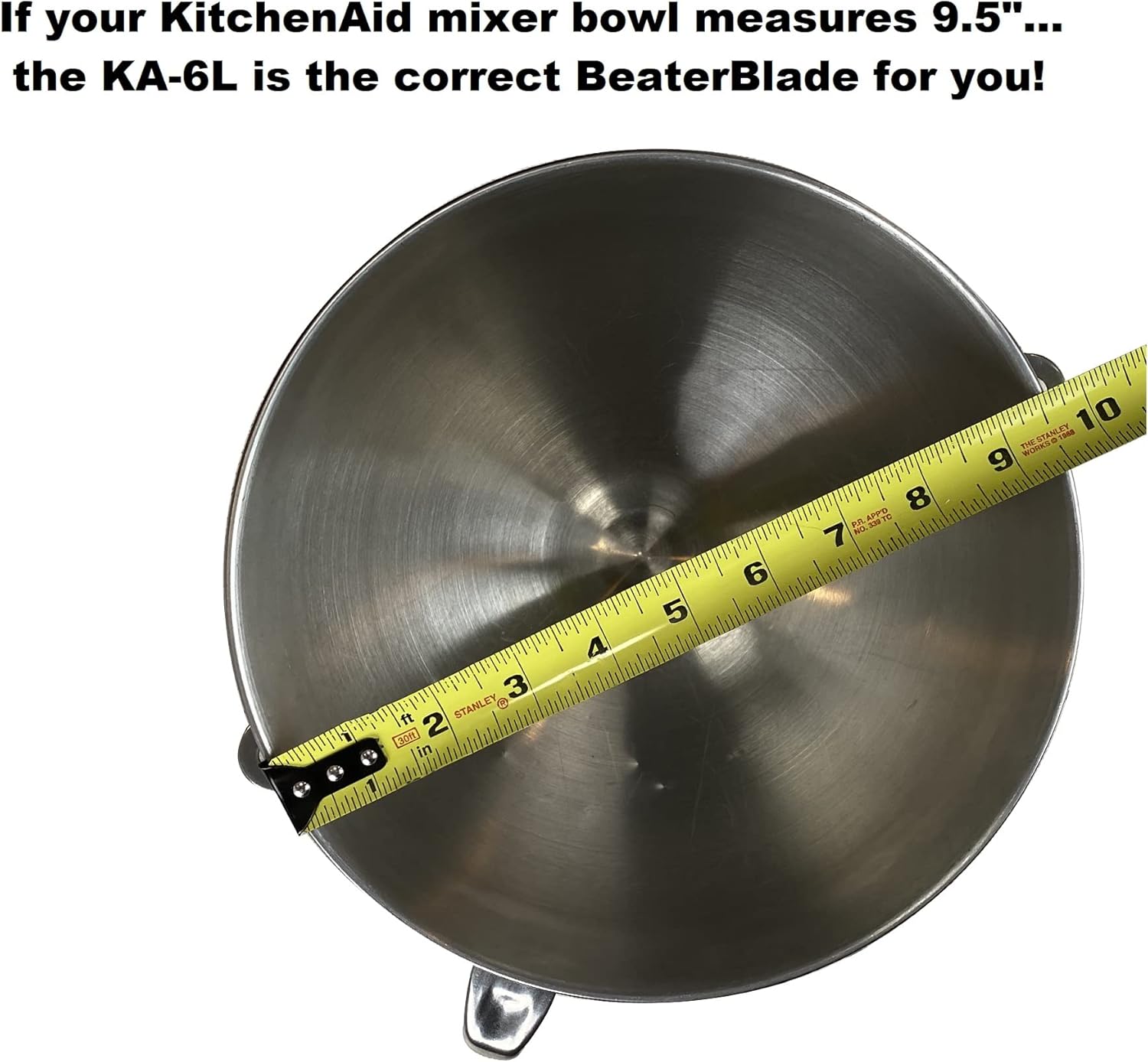 - BUY THE RIGHT SIZE: If you have a KitchenAid 6 Quart Bowl-Lift mixer with a stainless steel bowl, if your stand mixer bowl measures 9.5-inches diameter, across the top of the bowl, this is the correct BeaterBlade to purchase if that’s the mixer you own