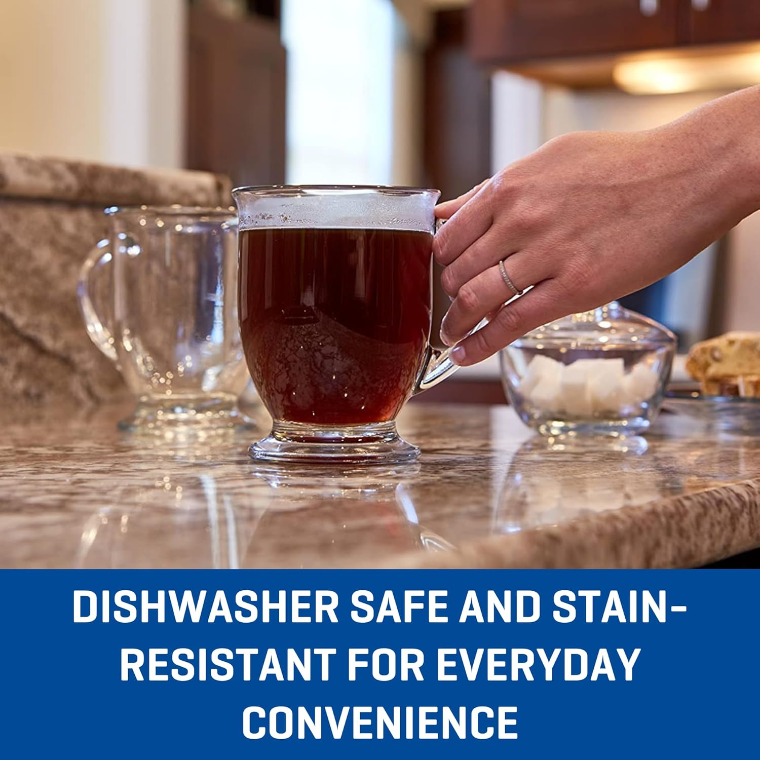 - INCLUDES: This Anchor Hocking set of coffee mugs comes with (6) 16-ounce glass mugs. All clear with an oversized handle - the ideal glass for hot beverages.