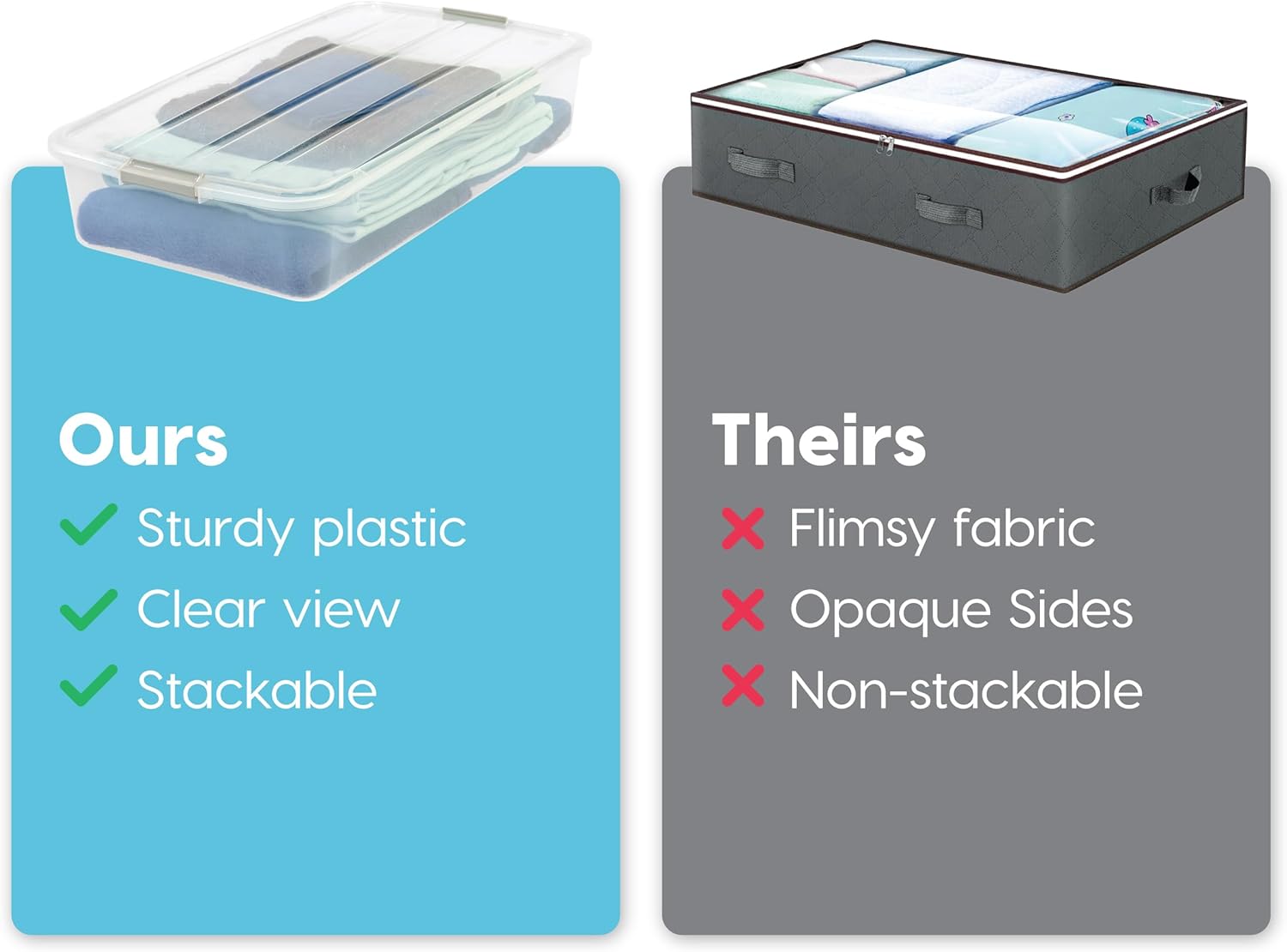 - SPACE SAVING: These bins are ideal for maximizing storage in tight spaces, especially under your bed by utilizing this often-overlooked area you can effectively free up room in your home while keeping your belongings organized and easily accessible.