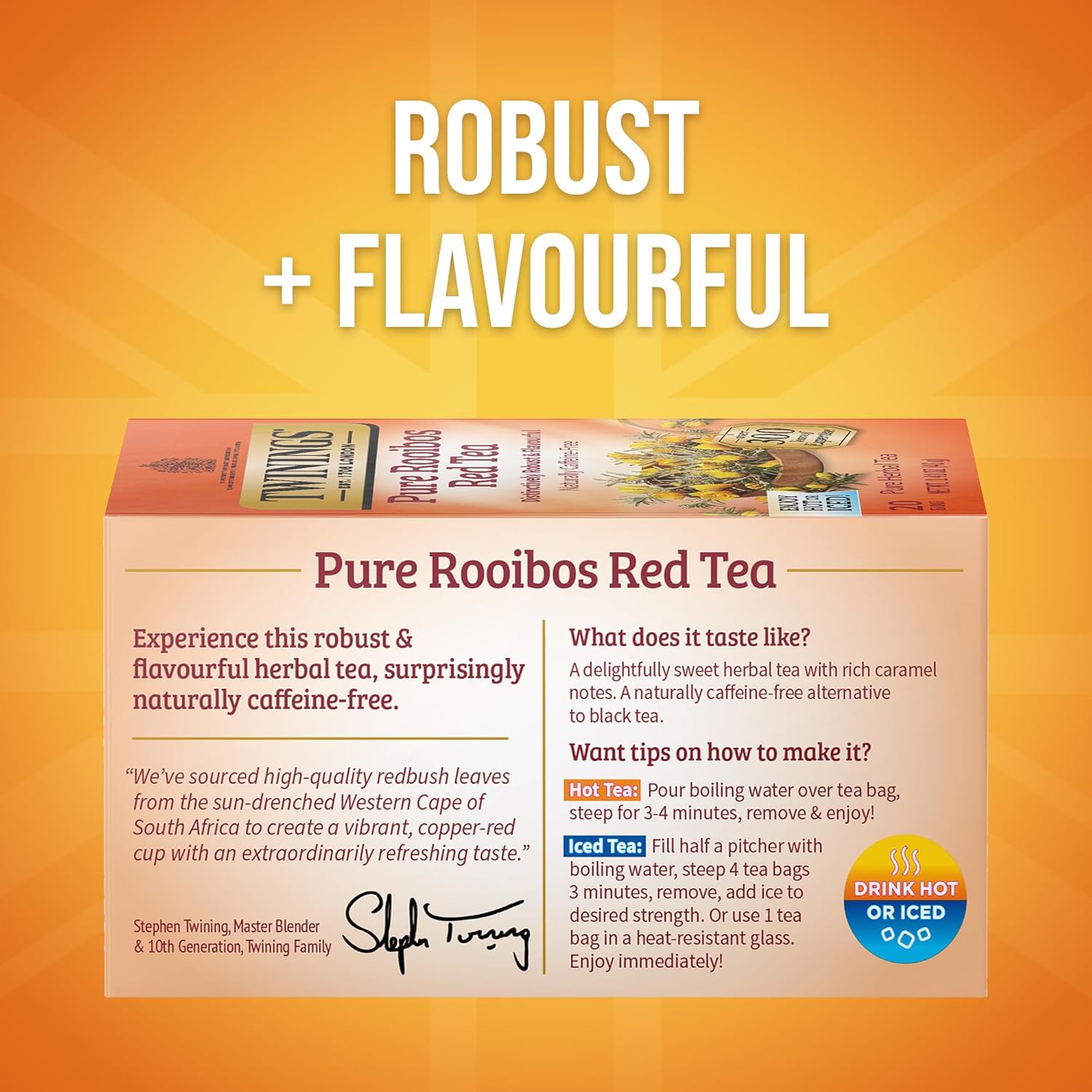 Twinings Pure Rooibos Red Herbal Tea Individually Wrapped Bags, 20 Count (Pack of 1), Sweet with Uplifting Aroma, Naturally Caffeine-Free, Enjoy Hot or Iced, 20 Teabags