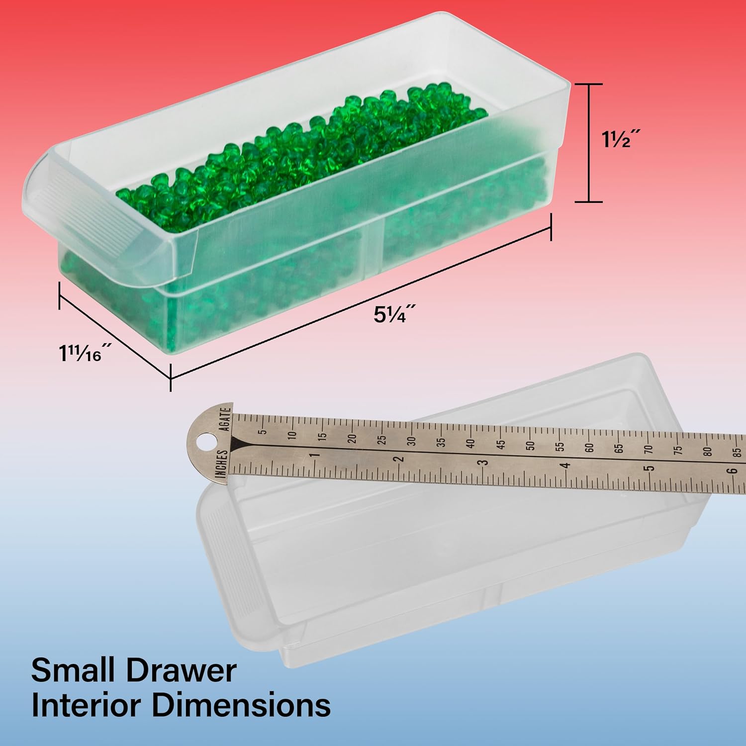 - HEAVY DUTY CABINET WITH 64 DRAWERS: The 64-drawer small storage cabinet is made in the U.S.A. from rugged, high-impact plastic and measures 20" W x 6" D x 16" H; Organizer drawer external dimensions - 6" x 2-1/4" x 1-5/8"