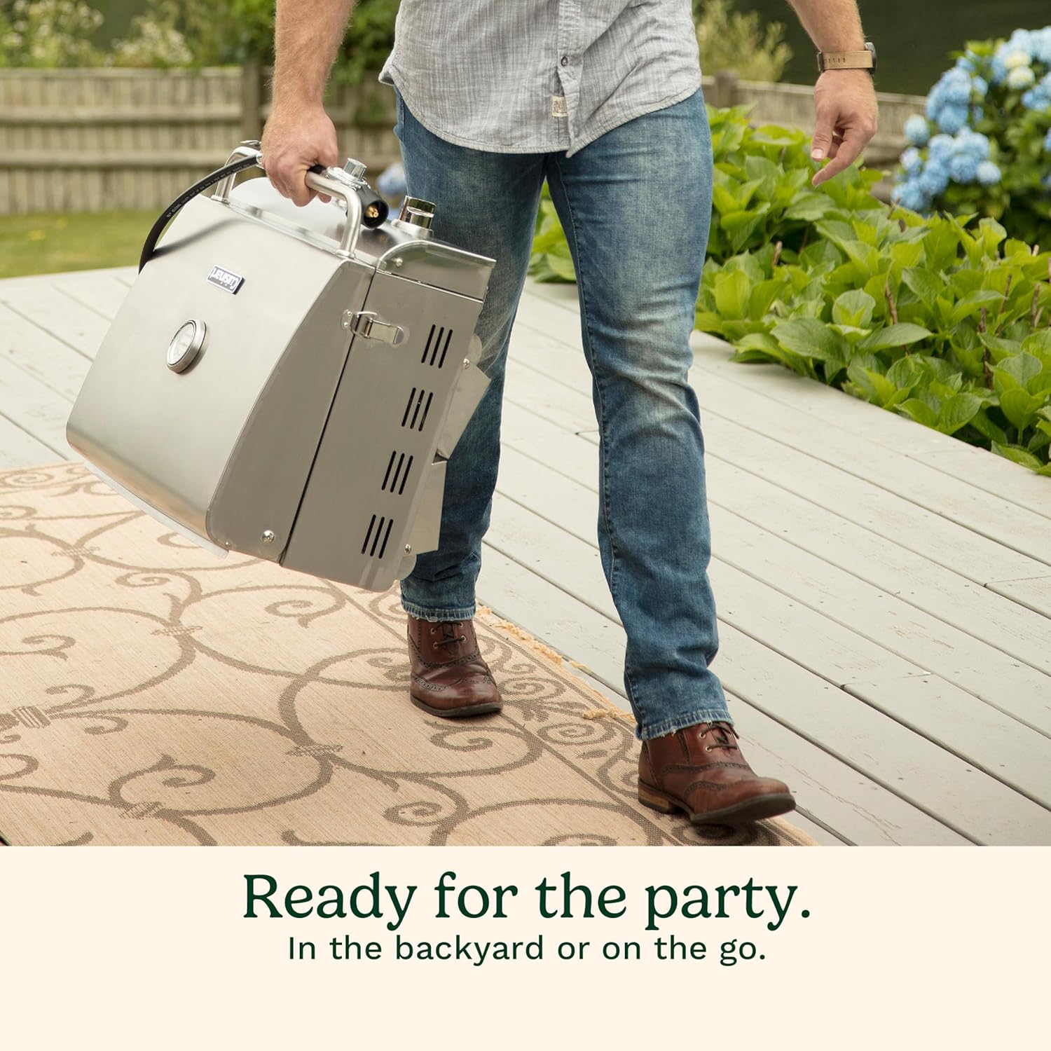 - LIGHTWEIGHT AND PORTABLE: Weighing only 22 lbs, this portable grill is easy to carry and transport. The locking lid, folding legs, and convenient carry handle make this gas grill the ideal choice for camping trips, tailgating, or backyard BBQs