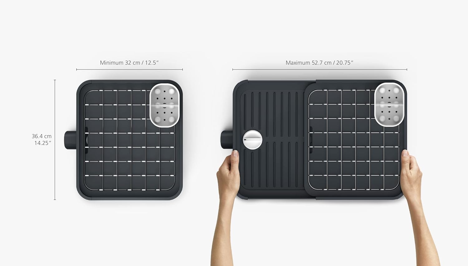 Joseph Joseph Extendable Dish Drying Rack with expanding Dual Parts, Non-Scratch, Movable Silverware Drainer & Drainage Spout, Grey