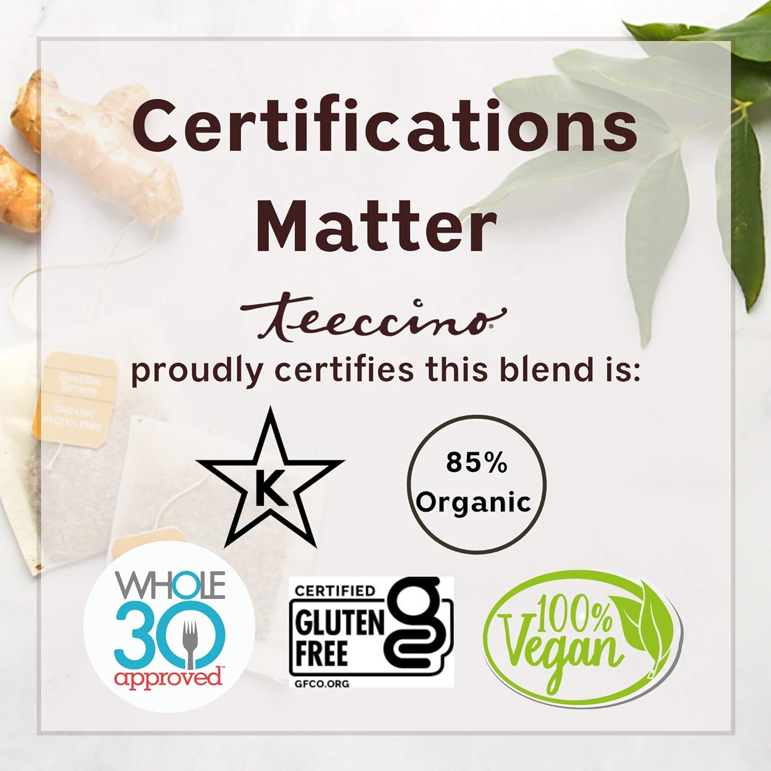 - 3X MORE HERBS - Teeccino’s 6g tea bag holds three times more herbs than standard tea bags which increases its benefits for maximum wellness in your cup. No artificial flavors, chemicals, MSG, or preservatives. Non-GMO, organic herbs.