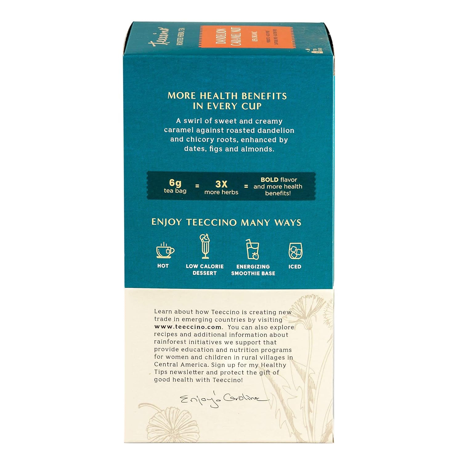 Teeccino Dandelion Caramel Nut Tea - Caffeine Free, Roasted Herbal Tea with Prebiotics, 3x More Herbs than Regular Tea Bags, Gluten Free - 25 Tea Bags (Pack of 3)