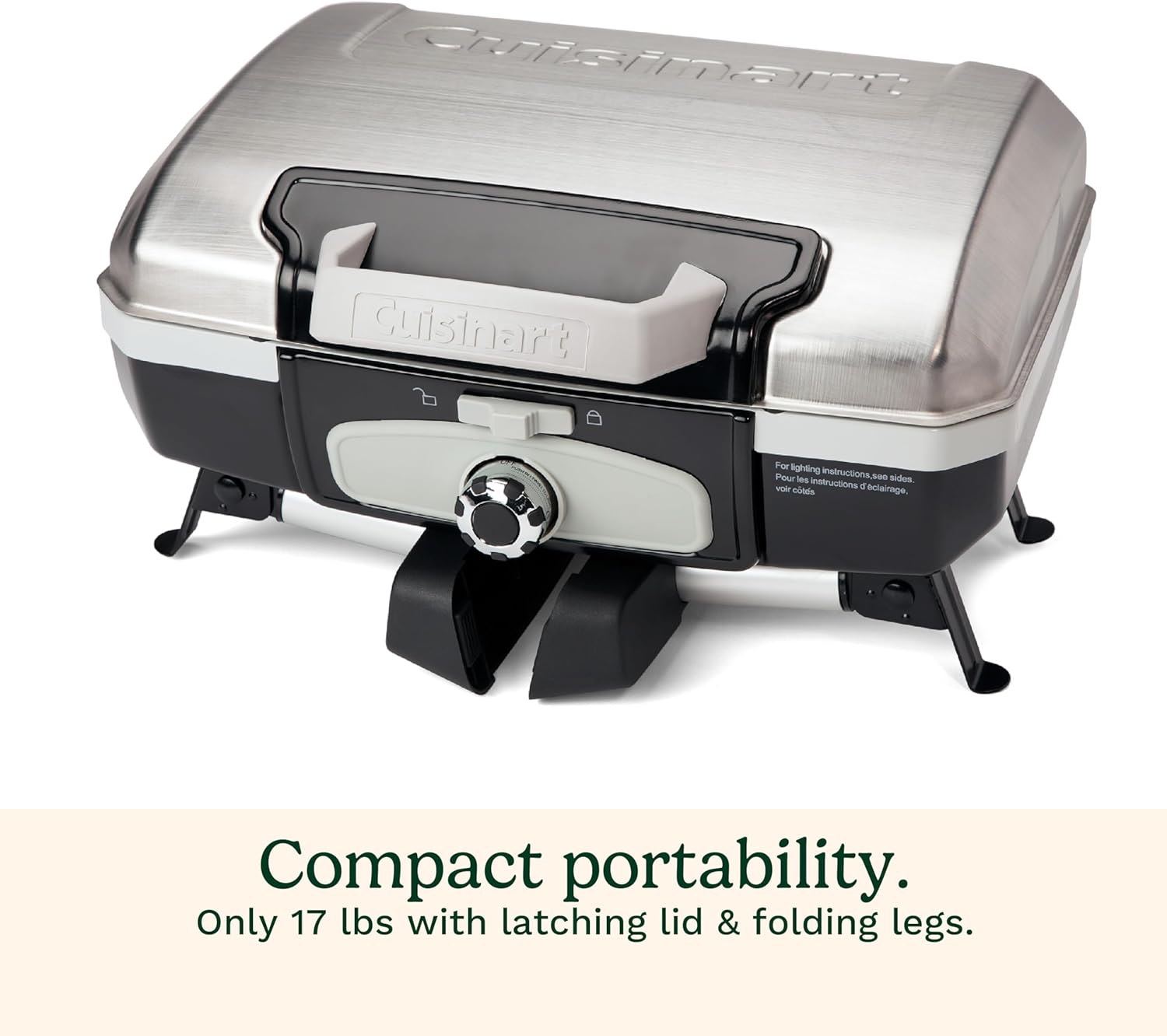 Cuisinart Petite Gourmet Portable Gas Grill, Compact Portable Grill Propane, 150 Sq. In. Cooking Surface, 5,500 BTU Burner Small Gas Grills for Camping, BBQ, Folding Legs and Carry Handles, Stainless
