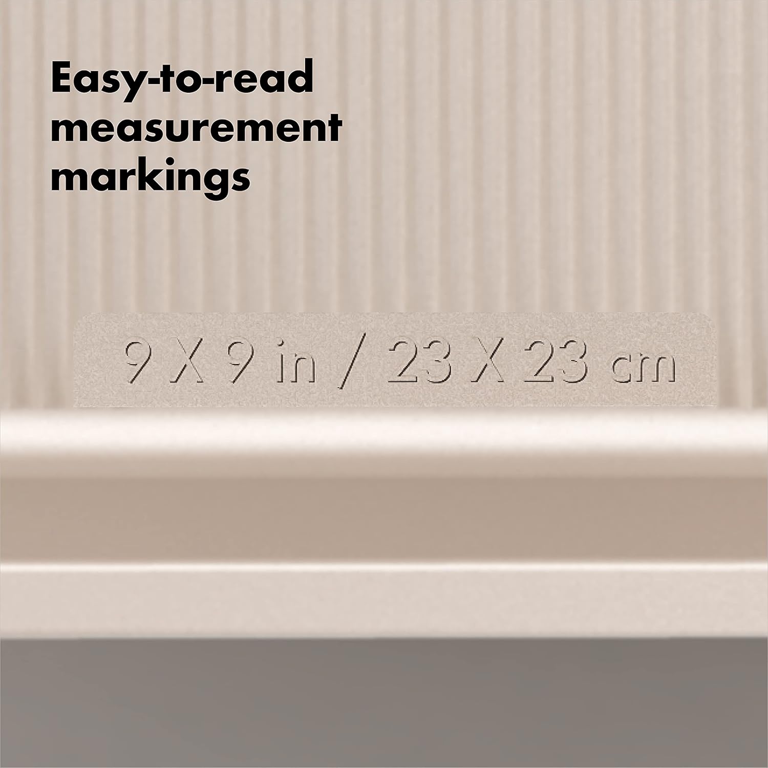 - Visible pan dimension markings on top surface allow for quick and easy size identification