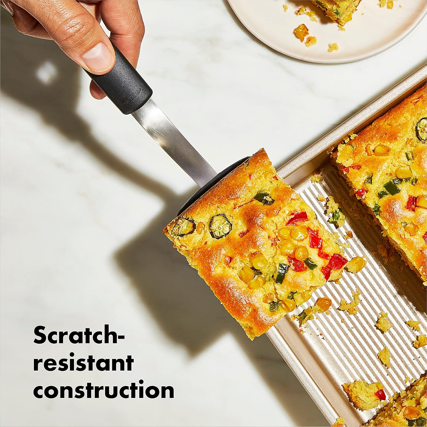 - Square rolled edges add strength and offer a secure grip for easy transfer to and from oven