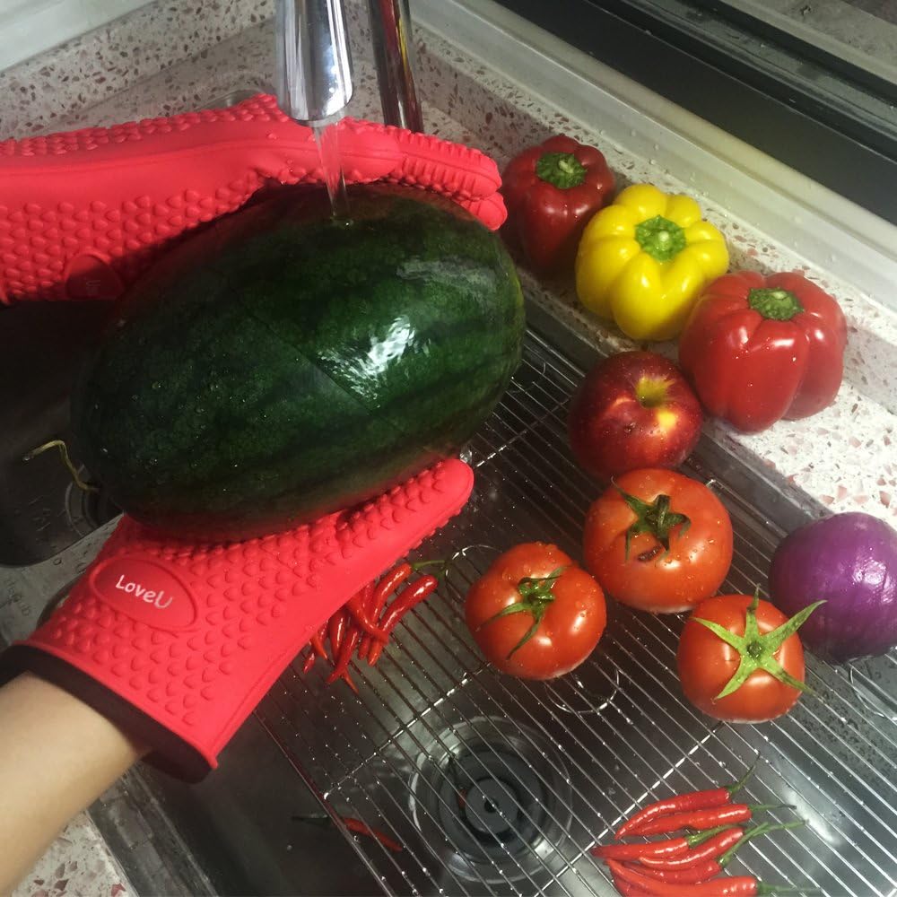 - Multifunctional And Useful Kitchen Tool Or Bbq Accessories: LoveU. heat resistant gloves let you safely and comfortably when you are cooking, BBQing, boiling water, pickling, opening cans or other household tasks. It is resistant to heat、oil、water and stain while protect your hands.