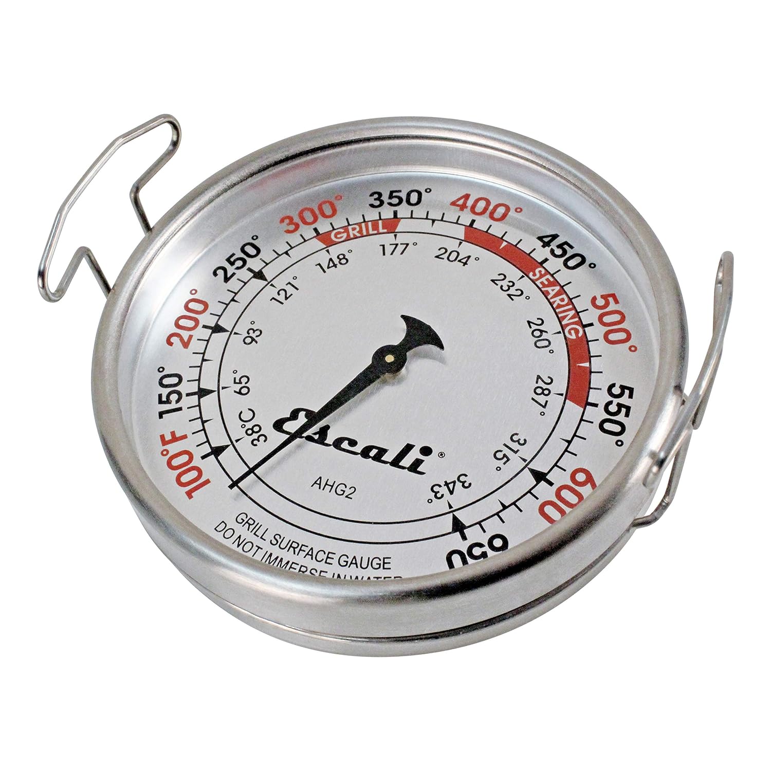 Escali AHG2 Stainless Steel Extra Large Direct Grill Surface Thermometer, Searing Temperature Zones 100-600F Degree Range