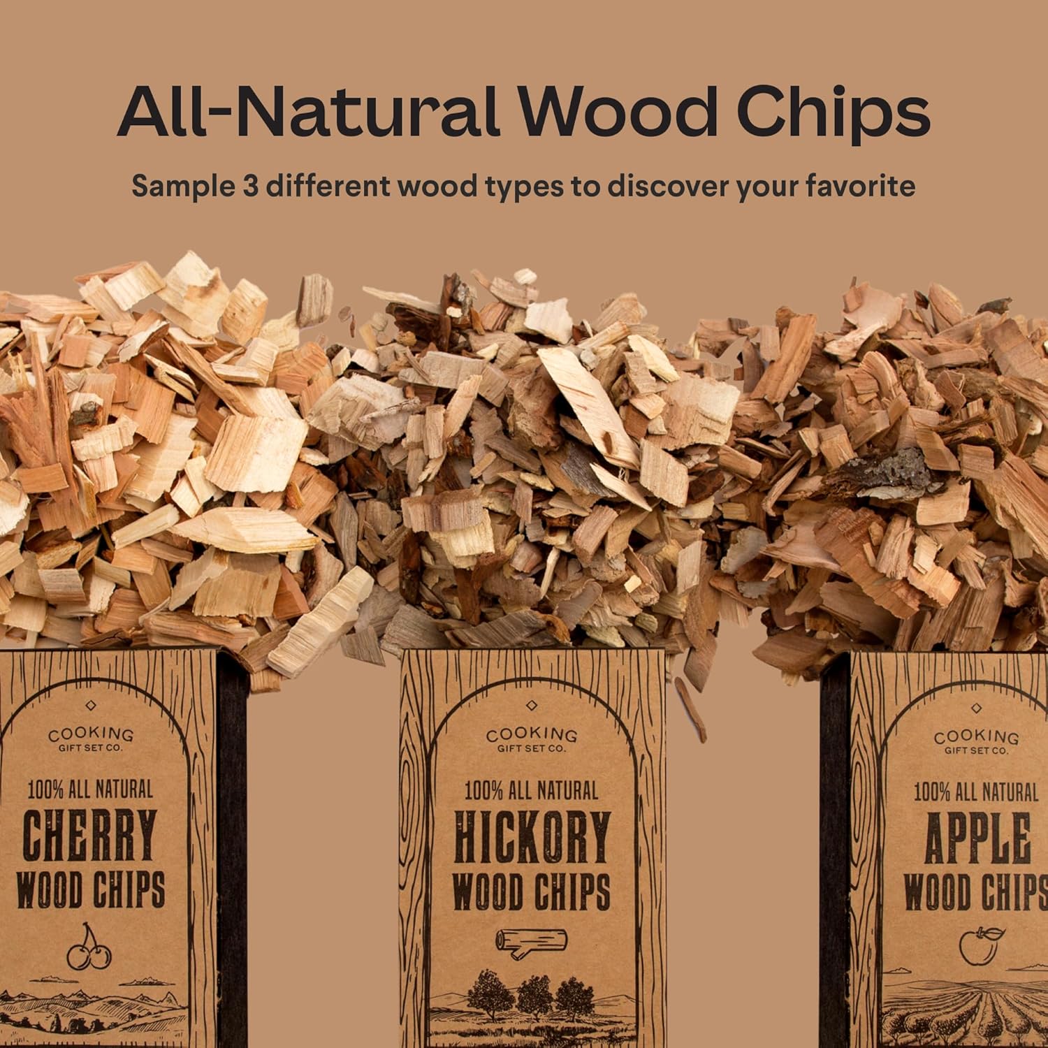 • Three Premium Wood Flavors - Includes Apple, Cherry & Hickory wood chips for sweet, mild or bold smoke. Mix and match flavors to create your own signature style.