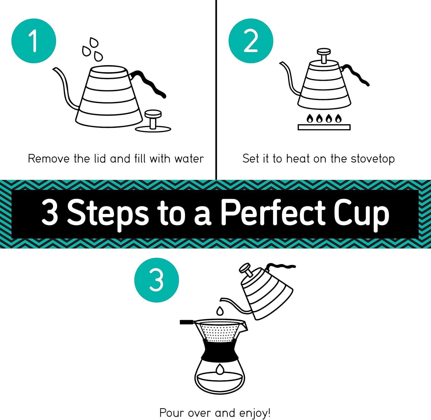- Engineered in premium-grade stainless steel with a gooseneck spout for steady water flow (essential for hand drip perfection). It’s the first gooseneck kettle stovetop with a unique triple-layer base so it works on all stovetops and stays rust-free and safe for decades