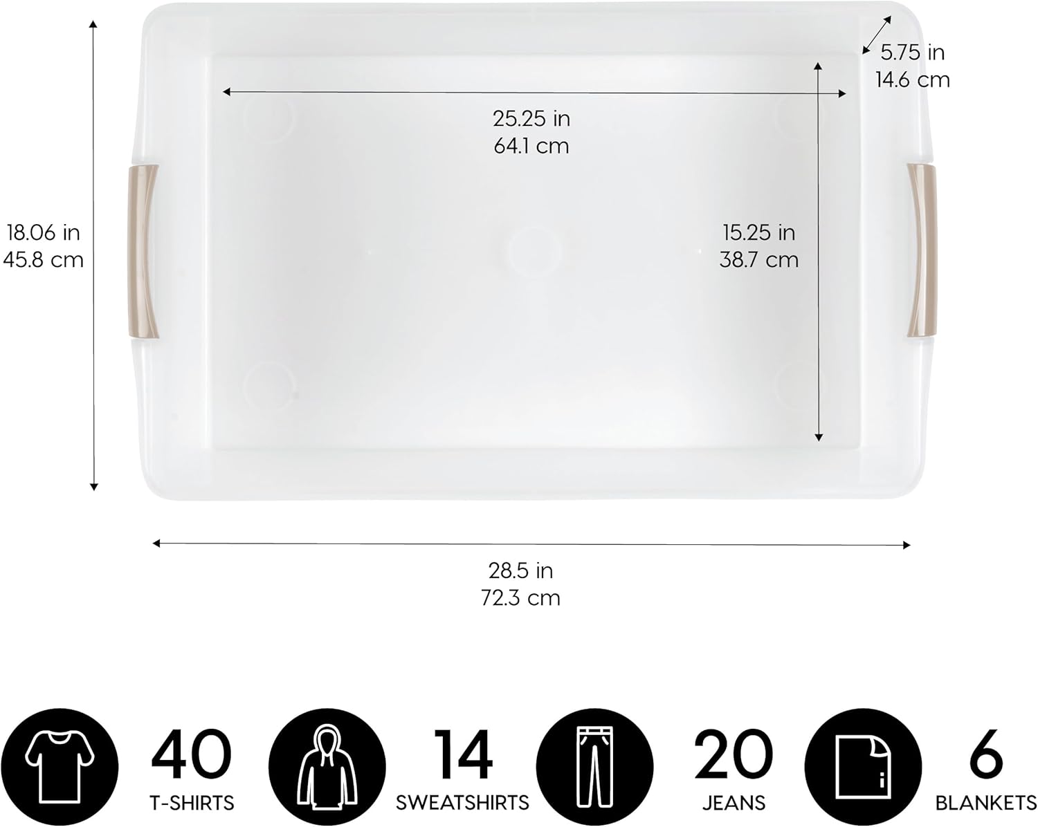 - EVERYDAY ORGANIZATION: These MADE IN USA 40 Qt. containers are perfect for organizing all of your items that need to be stored away while keeping dirt and dust away from clothes shoes and bed linens. They're also great for storing seasonal or holiday items.