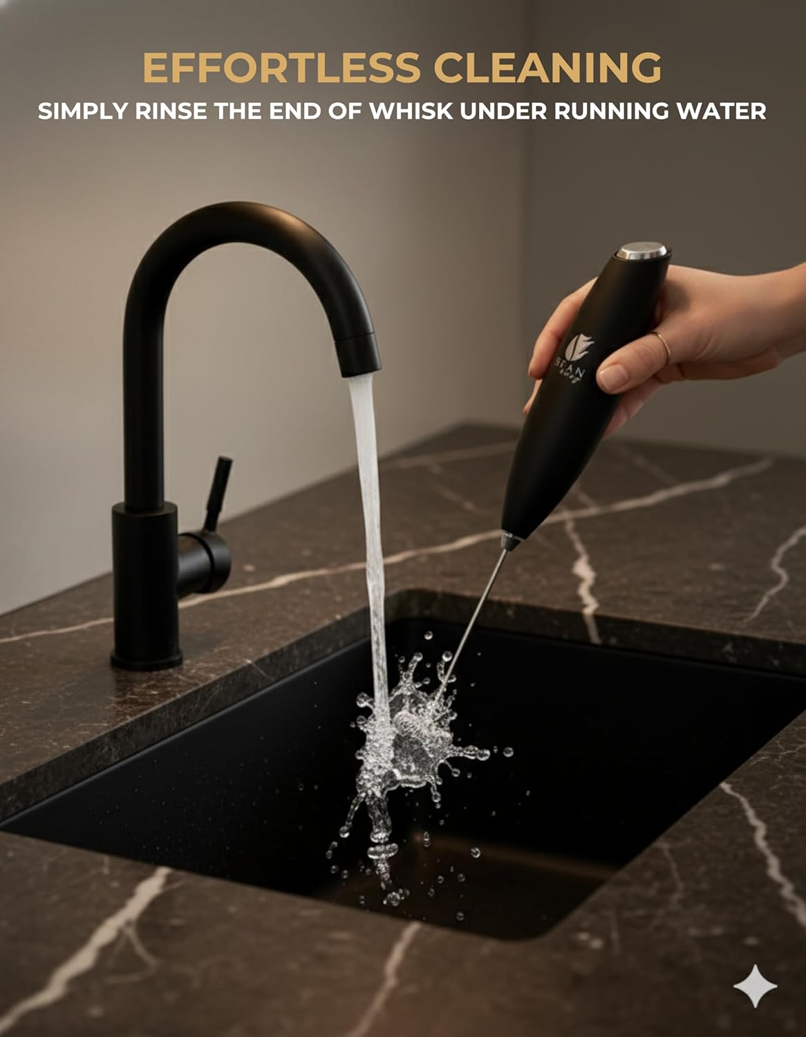 Bean Envy Milk Frother, Coffee Stirrers, Frother Wand, Milk Frother Handheld, Frother with stand, Hand Blender for Coffee, Lattes, Cappuccino, Matcha and Hot Chocolate – Kitchen Gifts - Black