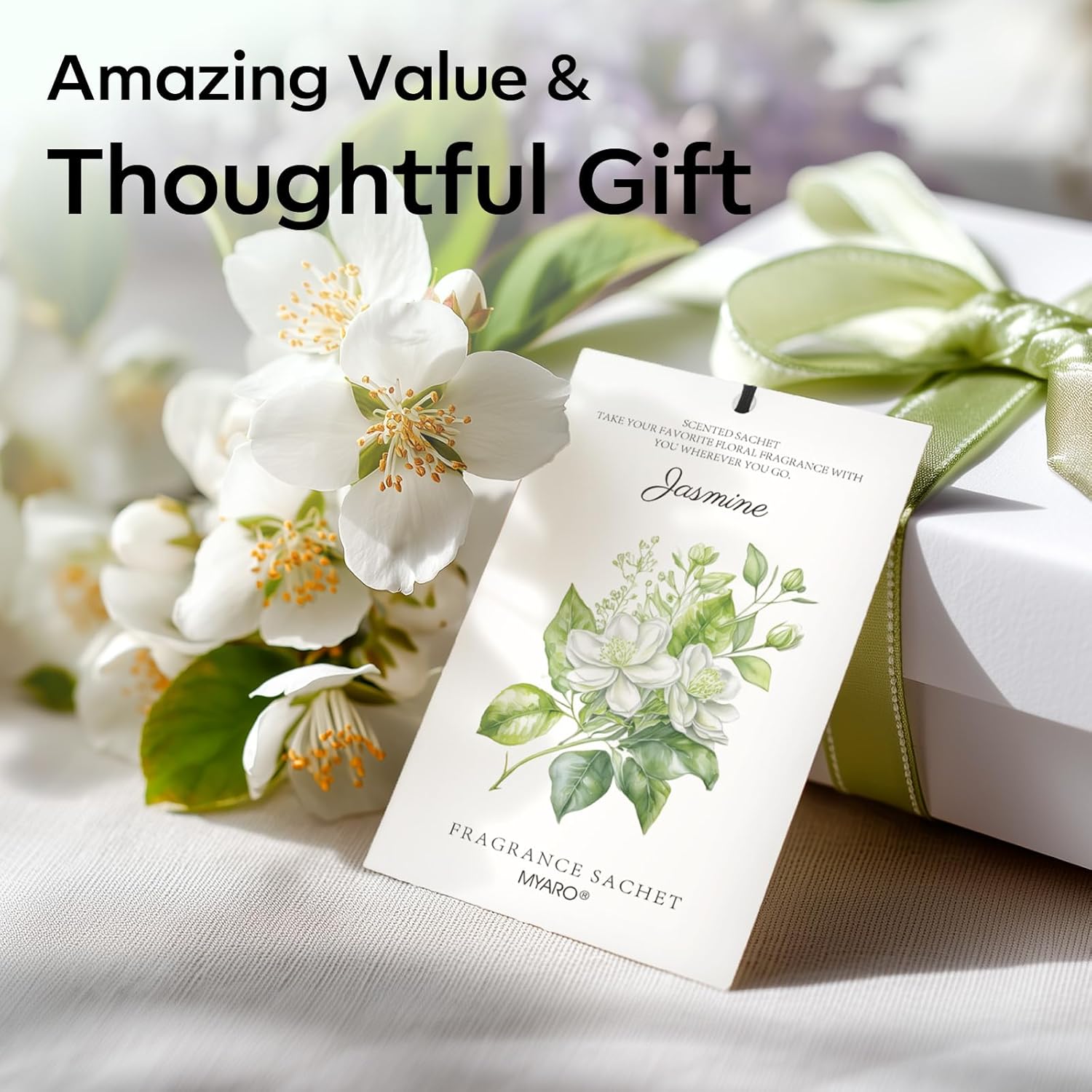 - MYARO Jasmine sachet bags: Includes 12 scented sachets (each bag size: 4.13 inch x 2.76 inch). Our natural fragrance will take you on a journey with the Jasmine fresh scents sachet packets