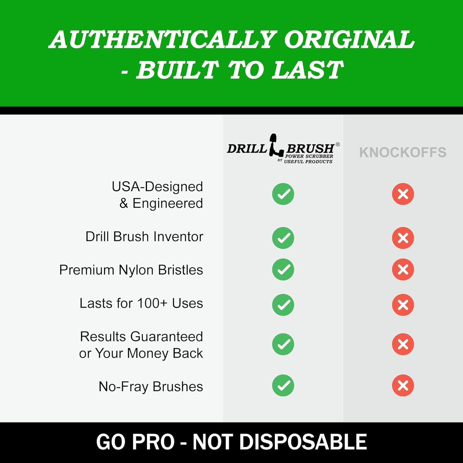 - CRAFTED BY INNOVATORS, TRUSTED BY MILLIONS - THE DRILLBRUSH STORY: Born from a real need and refined through feedback, Drillbrush Power Scrubber products are proudly made by cleaning enthusiasts for cleaning enthusiasts. With millions sold, our brush attachment for power drill lineup reflects a commitment to quality, innovation, and user satisfaction. Experience the difference with Drillbrush - inventor/innovator of the electric spin scrubber for your drill.