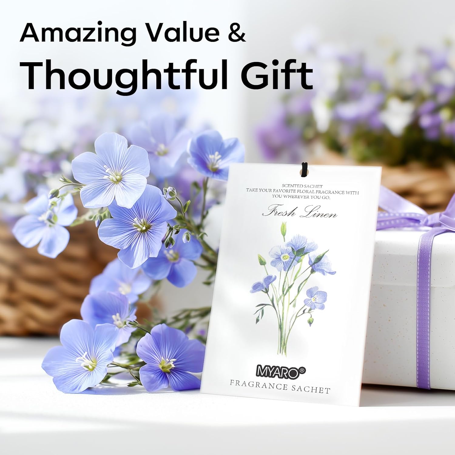 MYARO 12 Packs Linen Scented Sachets for Drawer and Closet, Long Lasting Fresh Scent Air Freshener & Odor Eliminator Home Fragrance Potpourri Bag