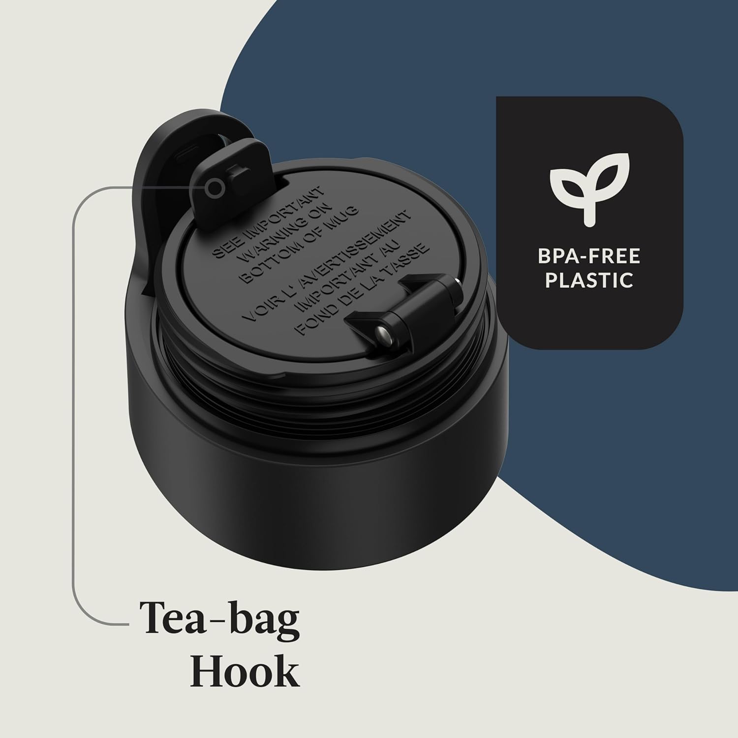 - SAFE-TEA FIRST: Lid has inner hook for tea bags so you can avoid wet, messy strings and leaks
