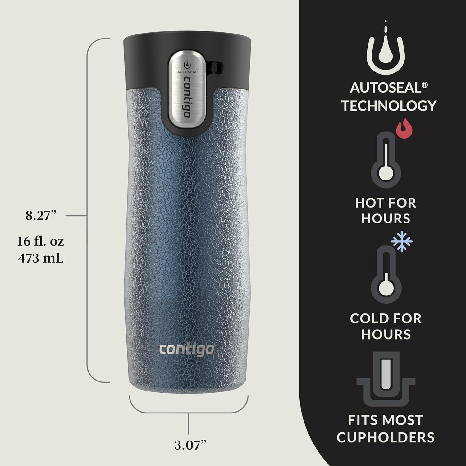 Contigo® AUTOSEAL® West Loop Vacuum-Insulated Stainless Steel Travel Mug with Easy-Clean Lid, 16 oz, Crystal Blueberry