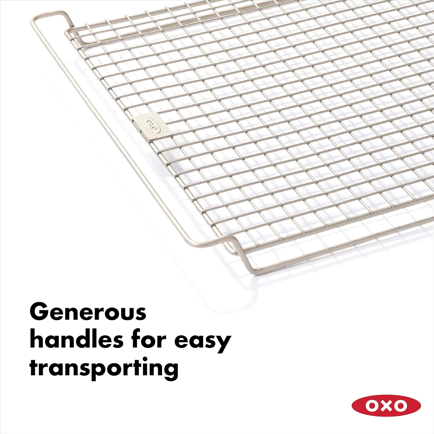 - Generous handle for easy removal from pan or for transferring rack
