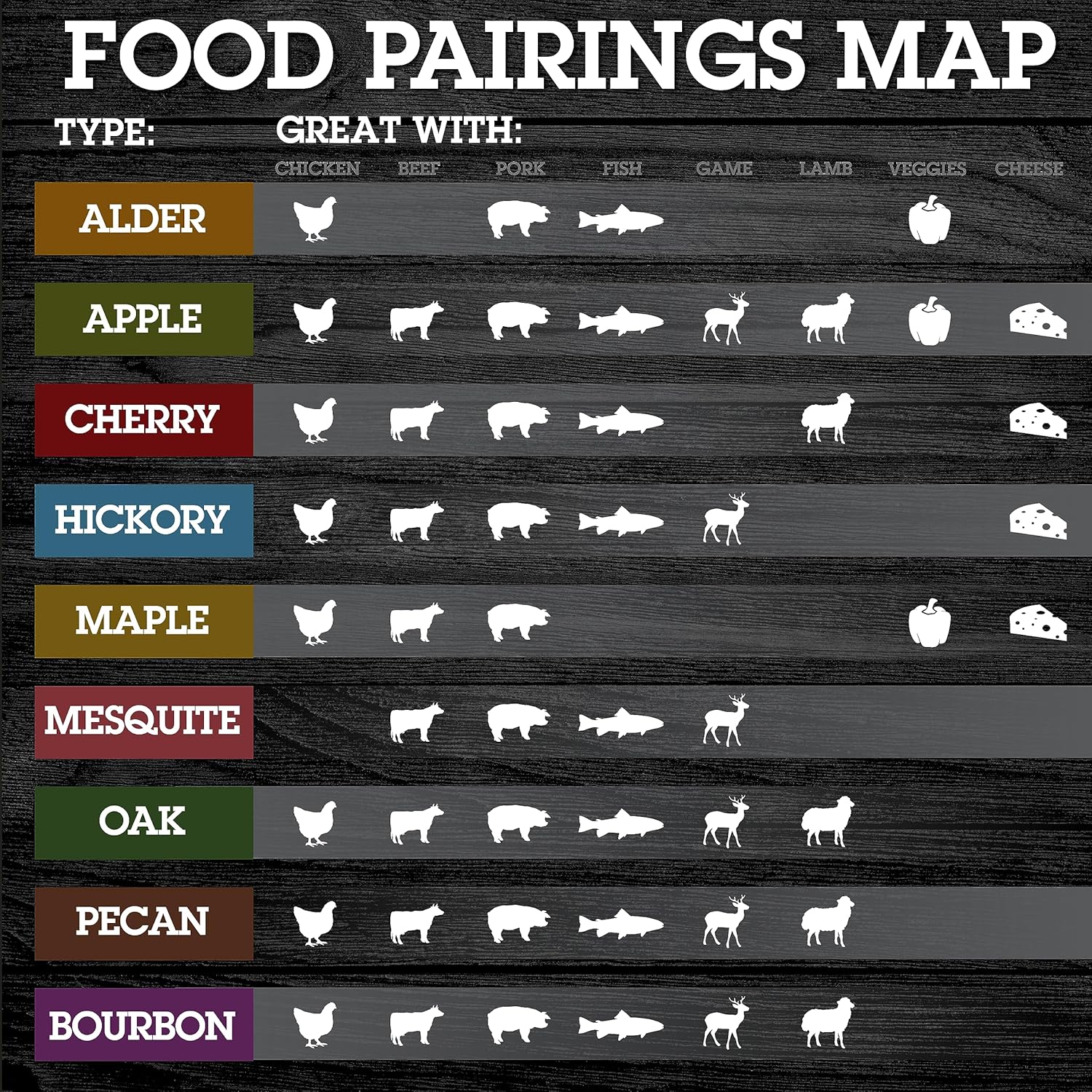 - Maple is a subtle flavor that creates just the right balance of smokey flavor in delicate foods. Maple wood chips pair well with poultry, beef, pork, veggies, and cheese!