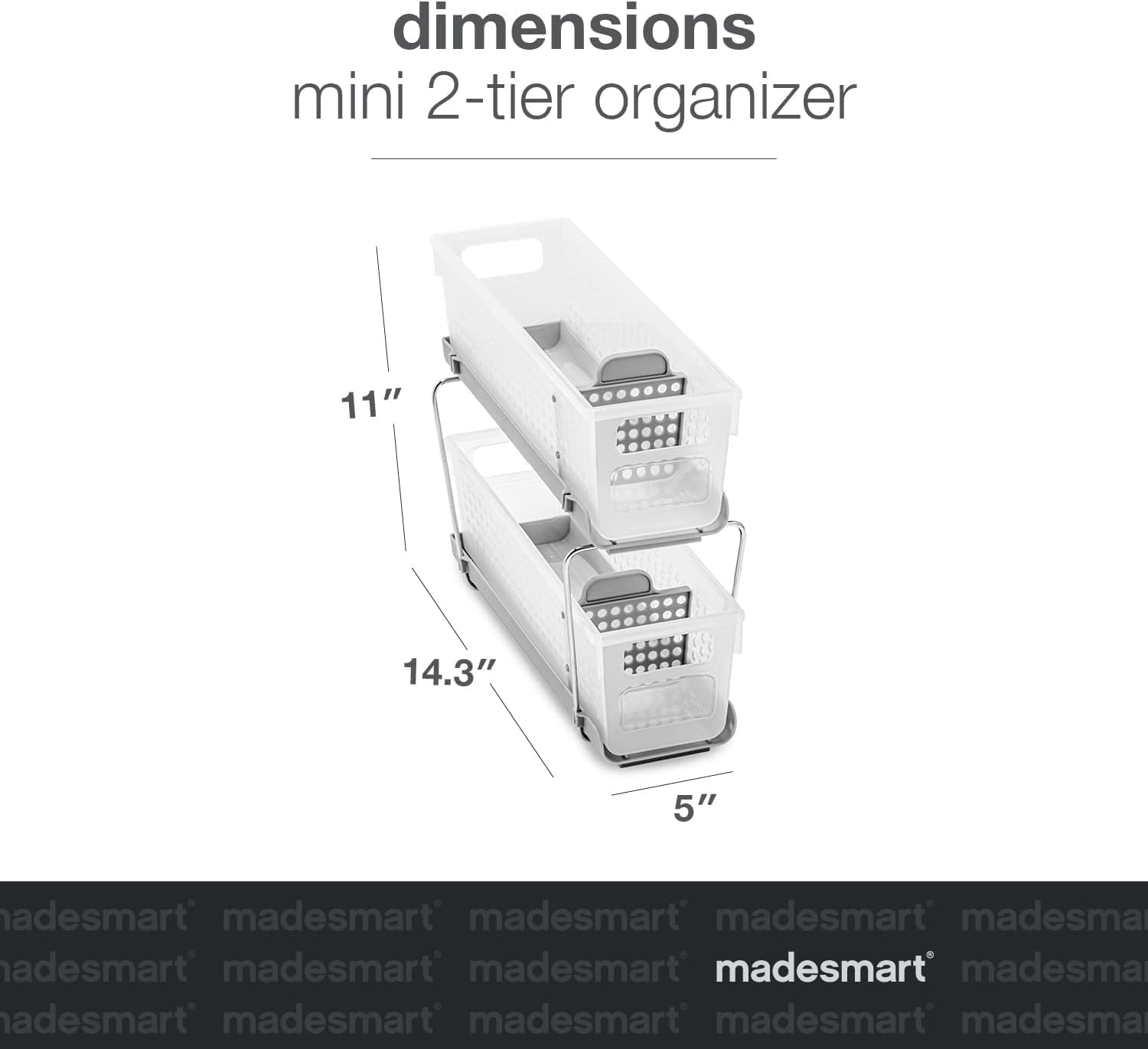 • SPACE-SAVING DESIGN: Features 2 removable baskets for easy access to your essentials, and both baskets have 2 adjustable dividers to help further separate your items for easy custom organization. Bins measure 14.3"x5"x11" when stacked.