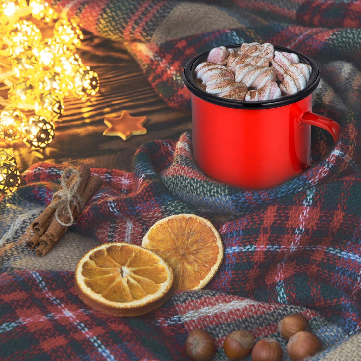 - 【CRAFTED】Fine and bright enamel coating prevent cup rusting, Rolled black rim with no burrs, Wide U-handle for grasp comfortably and hang easily, Strong construction with proper weight
