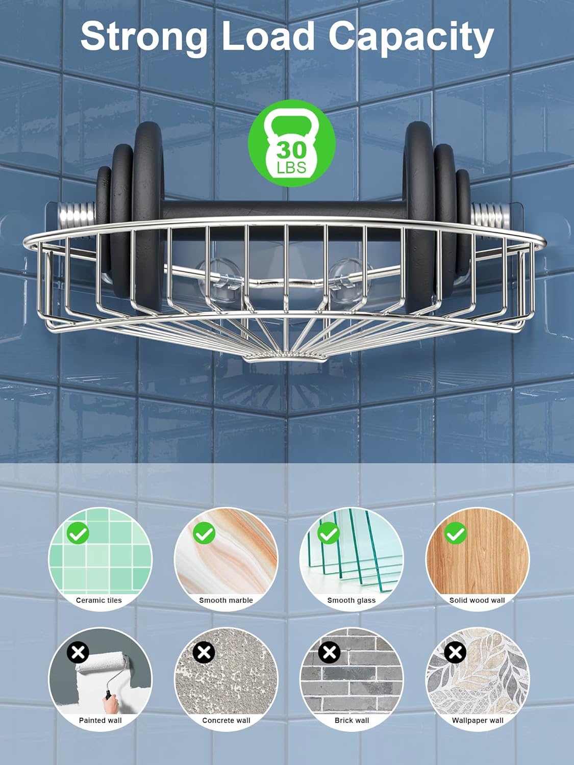 - RUSTPROOF SUS304 STAINLESS STEEL: Made of SUS304 stainless steel, which made the corner shower caddies rustproof, stable, durable, and longstanding use. Avoiding rust stains on the floor or walls, keep your space clean and tidy.