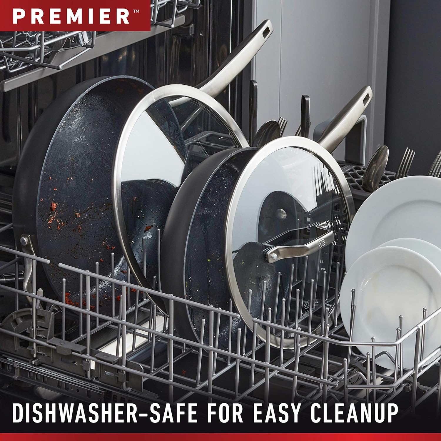 - Metal-utensil-safe, durable 3-layer nonstick interior with a hard-anodized aluminum exterior