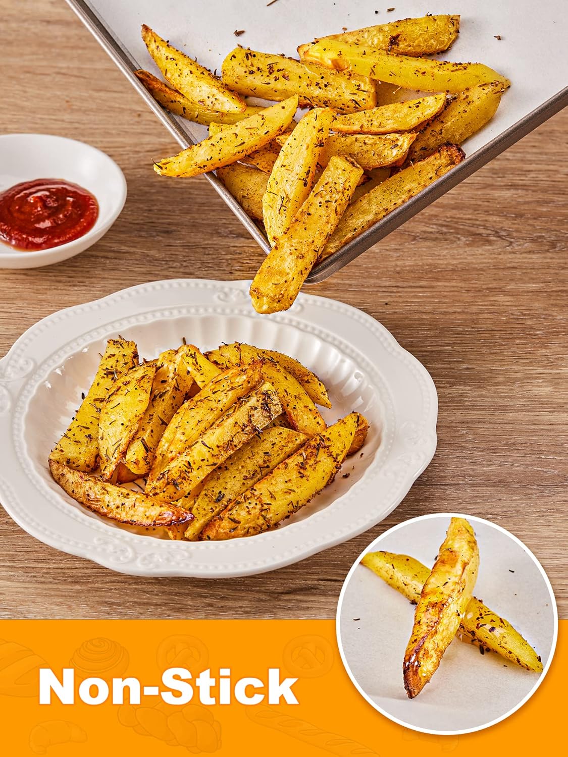 - Food Grade Baking Paper: Made of natural wood pulp, non-toxic, healthy and safe. Suitable for baking, grilling, frying, and steaming, you can use it for baking cookies, bread, meat, pizza, etc. Withstands temperatures up to 450℉, keeping food with its original flavor