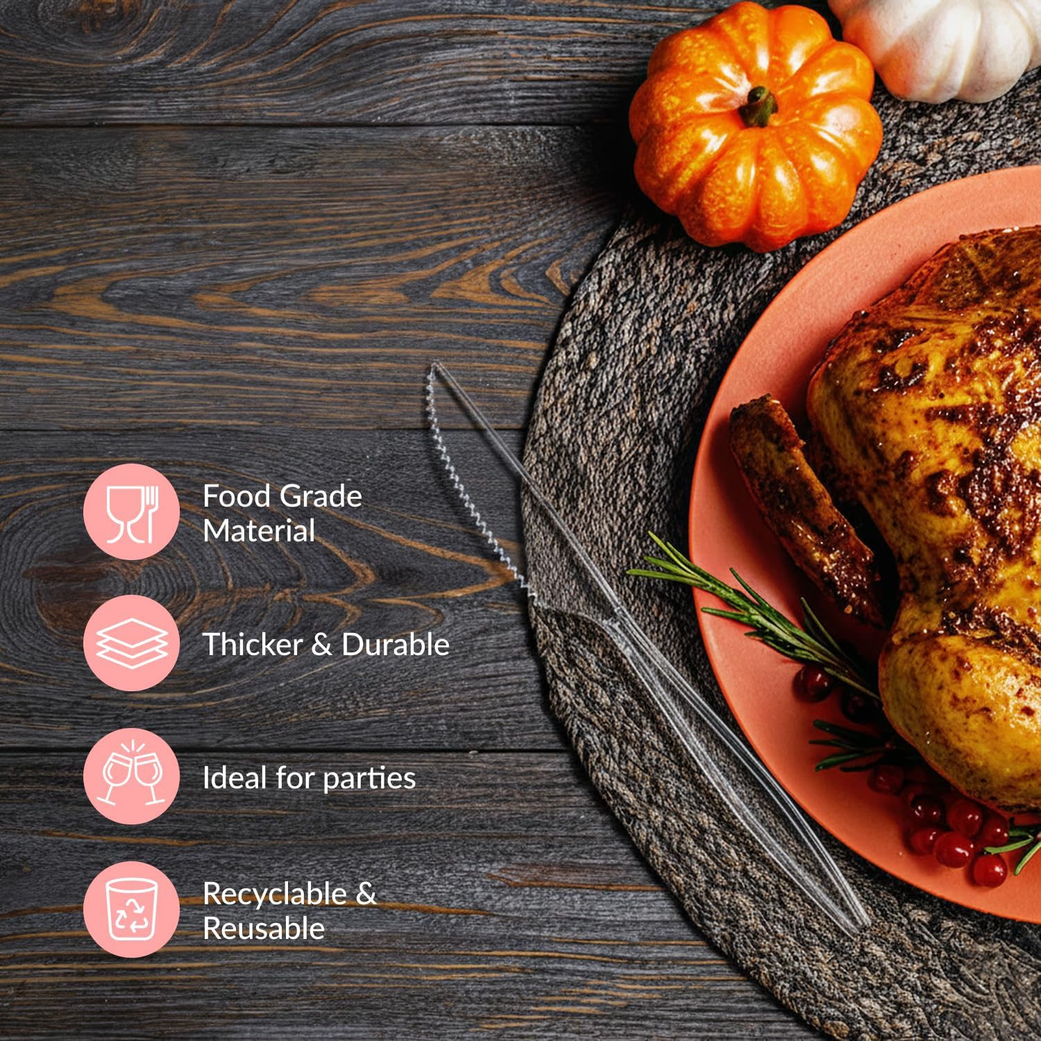 - Perfect for Large Events: Great for catering, gatherings or parties, this 100-pack of clear plastic knives offers disposable silverware heavy duty quality for weddings, dinners, and buffets alike
