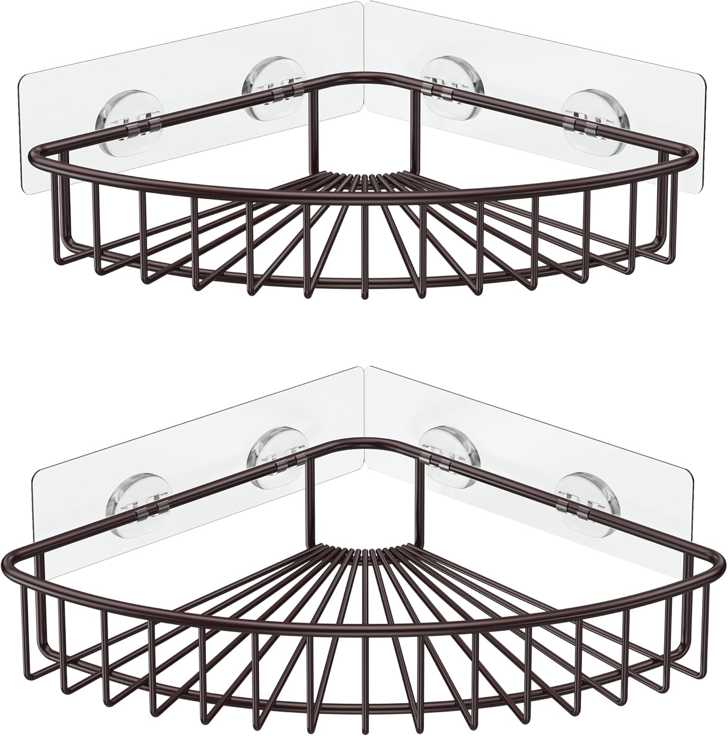 SMARTAKE 2-Pack Corner Shower Caddy, SUS304 Stainless Steel, Wall Mounted Bathroom Shelf with Adhesive, Storage Organizer for Toilet, Dorm and Kitchen (Bronze)