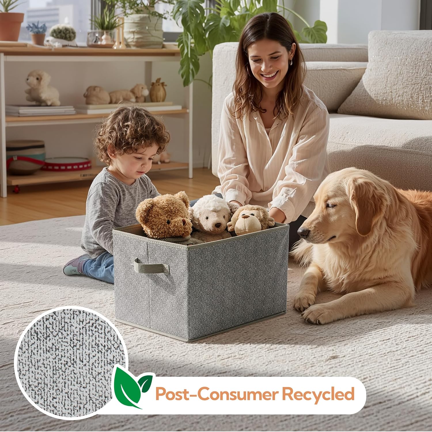 • Eco-Friendly Material - Made of textured linen-like fabric, breathable and wear-resistant, without irritating odor. Fabric boxes come in sets of 3, each measuring 15¼"L x 11¾"W x 10½"H .