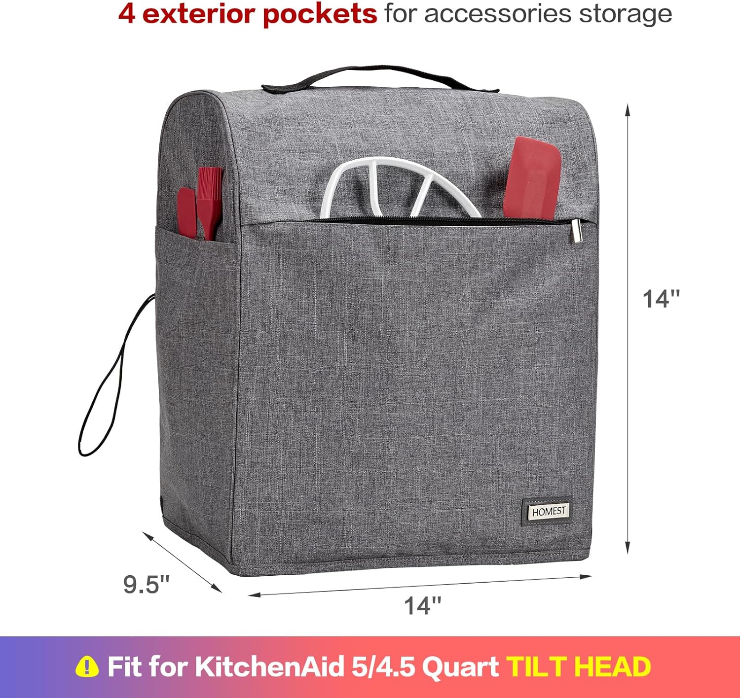 - FIT FOR 5/4.5 QUAR TTILT HEAD : Sized 14 x 9.5 x 14 inches,compatible with KitchenAid 5/4.5 quart Tilt head models. It is large enough to cover the entire machine without any exposure