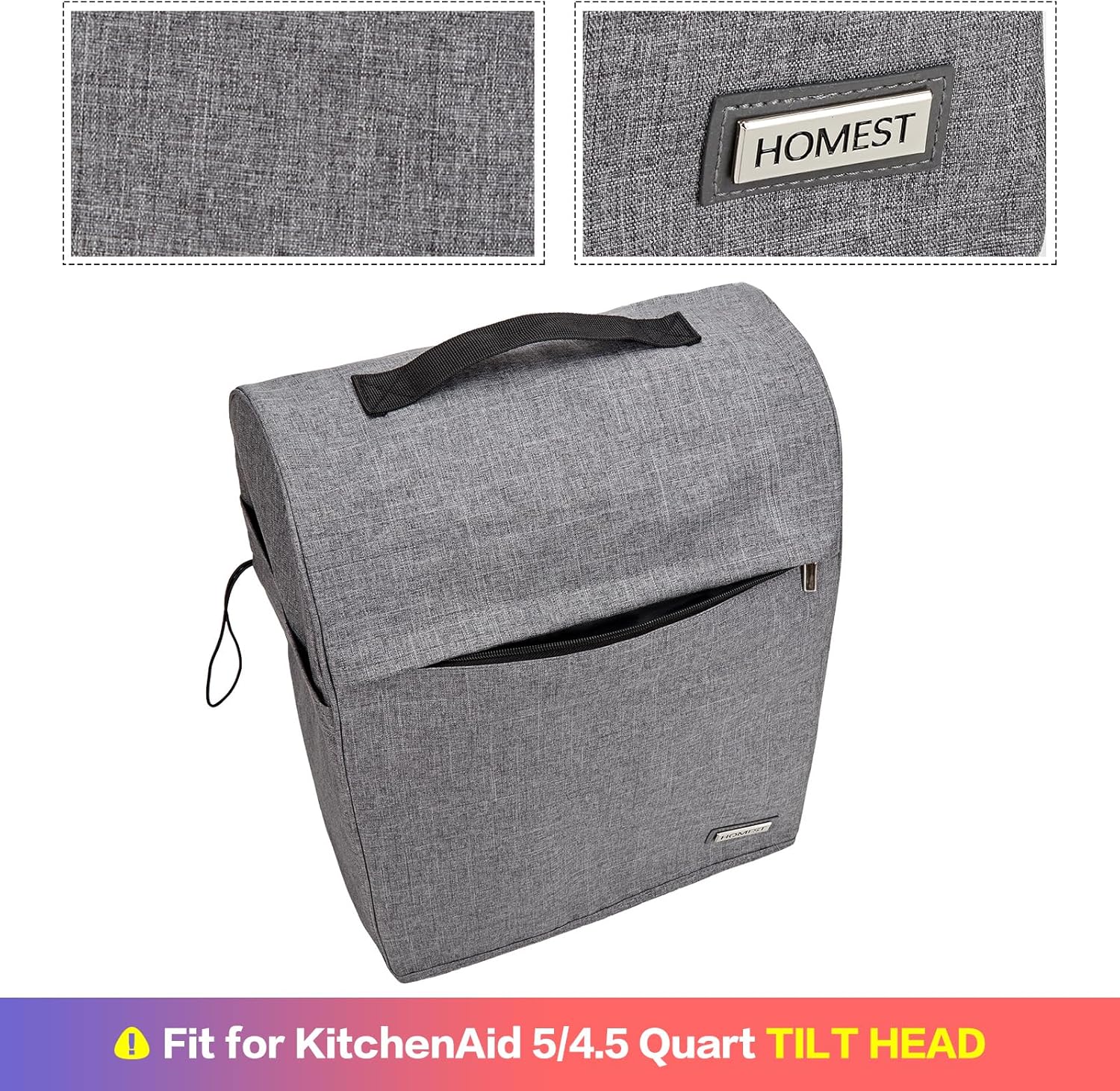 HOMEST Stand Mixer Dust Cover Compatible with KitchenAid 5/4.5 Quart Bowl Lift, Zipper Pocket for Various Kitchen Appliance Accessories, Grey (Patent Design)