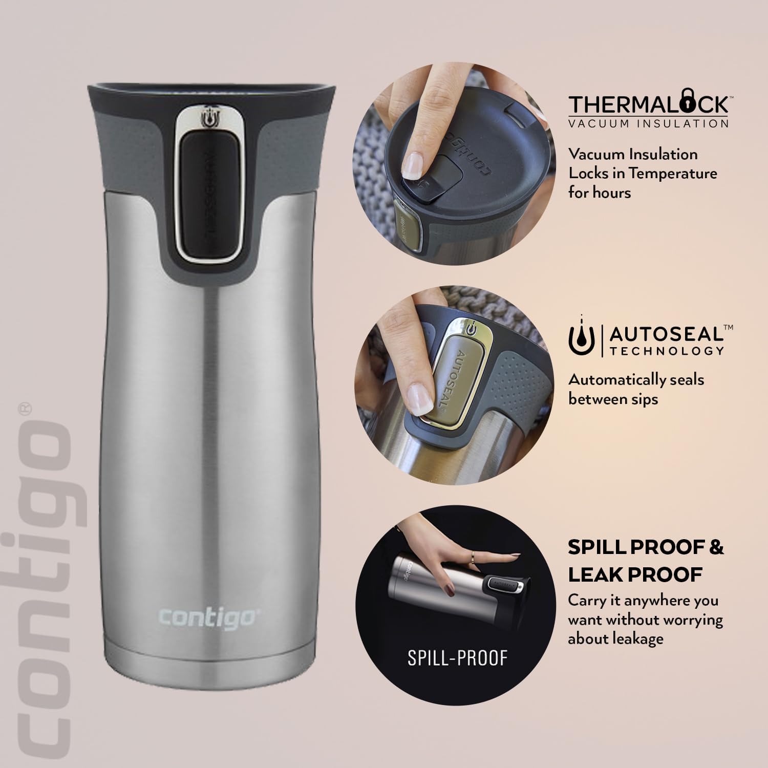 Contigo West Loop Autoseal Travel Mug, Stainless Steel Thermal Mug, Vacuum Flask, Leakproof Tumbler, Coffee Mug with BPA-Free Easy-Clean Lid