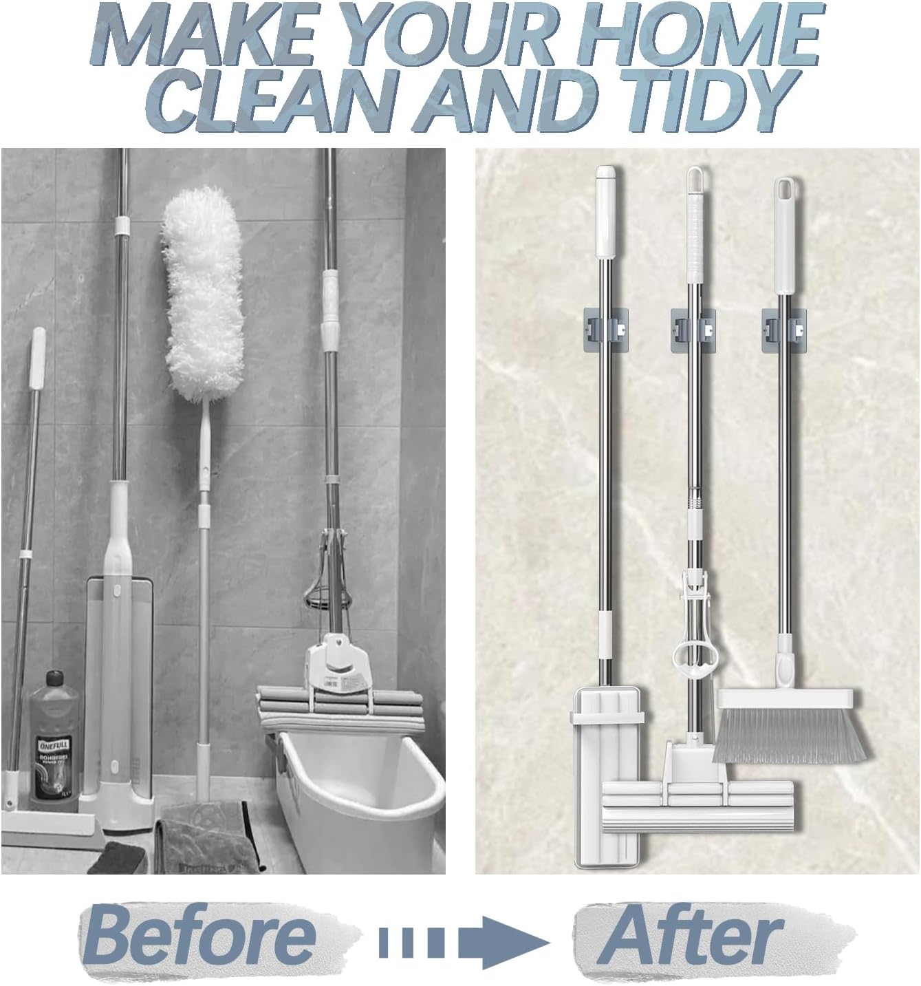 - ✅【Space-Saving Vertical/Horizontal Mount】Free up floor space in closets, laundry rooms, or entryways. Non-slip texture keeps brooms firmly in place.