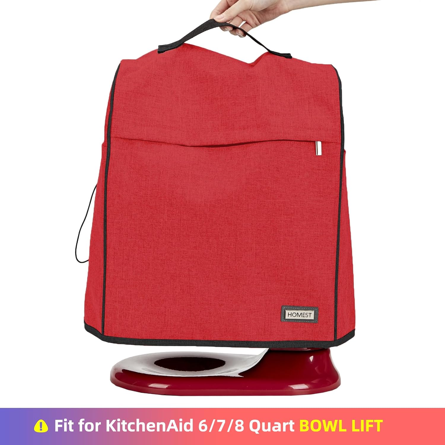 HOMEST Stand Mixer Cover Compatible with KitchenAid 6/7/8 Quart Bowl Lift,Dust Cover with Zipper Pocket for Accessories, Red (Patent Design)