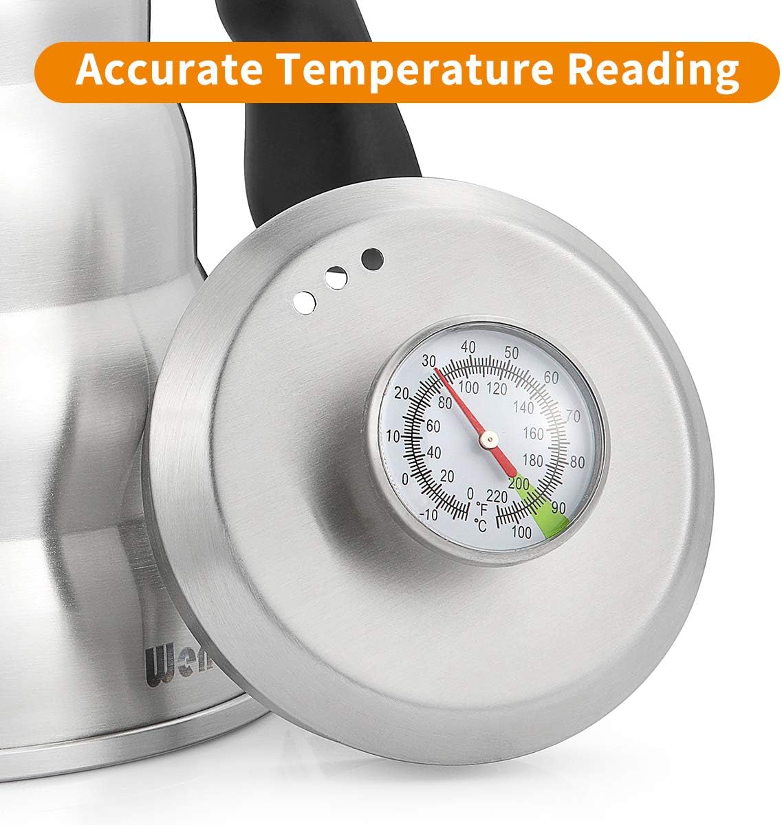 Pour Over Coffee Kettle with Thermometer for Exact Temperature 40 fl oz - Premium Stainless Steel Gooseneck Tea Kettle for Drip Coffee, French Press and Tea - Works on Stove and Any Heat Source