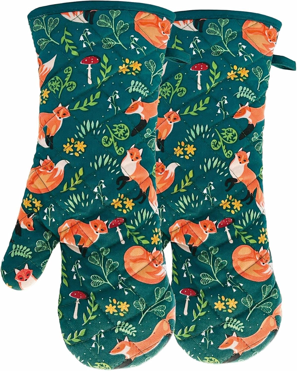 Oven Mitts Cotton Fashion Cute Fox Design 1 pair Heat Resistant Oven Gloves Safe Cooking Baking Grilling Barbecue Machine Washable (fox, oven mitts)