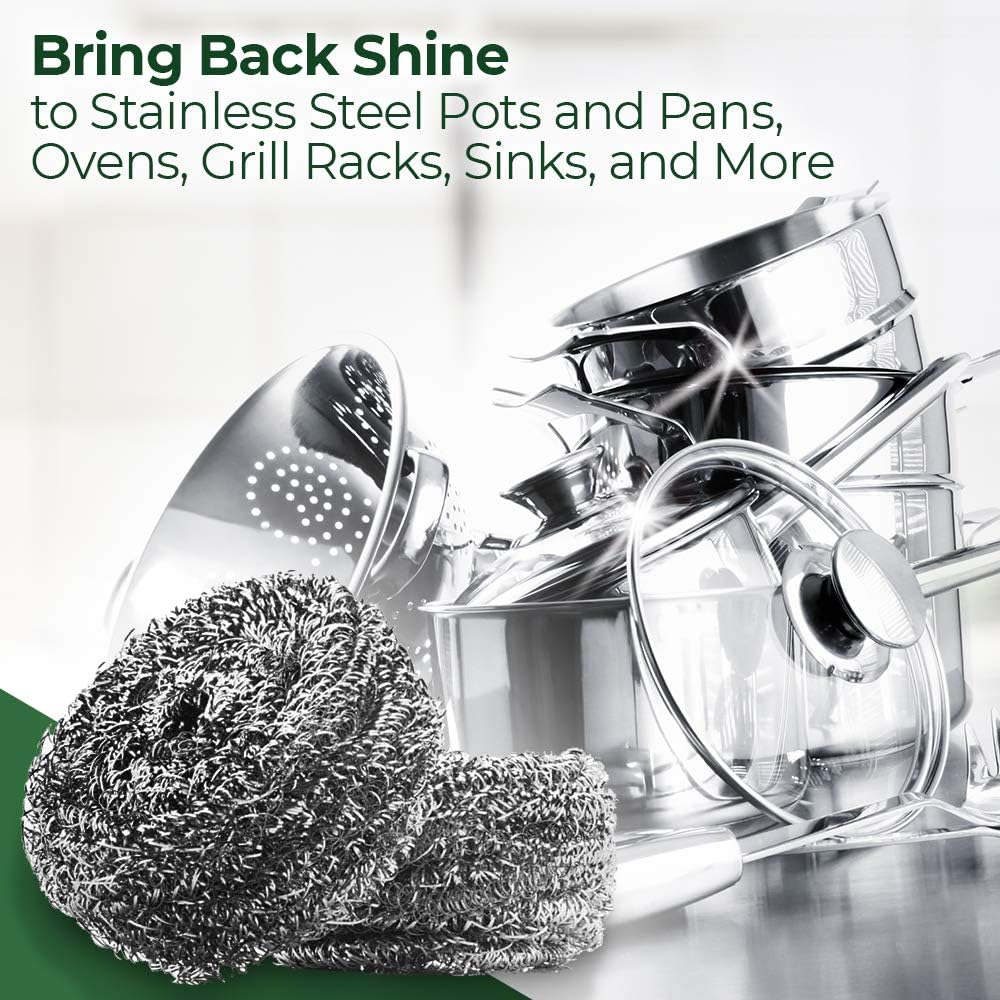 - AMAZING SHINE: It doesn’t matter how delicate your dish is or how tough the spot is on your pot or pan. As tough as steel wool, you can grab one of these handy Stanley Stainless Steel Scrubbers for the job to make your task a breeze.