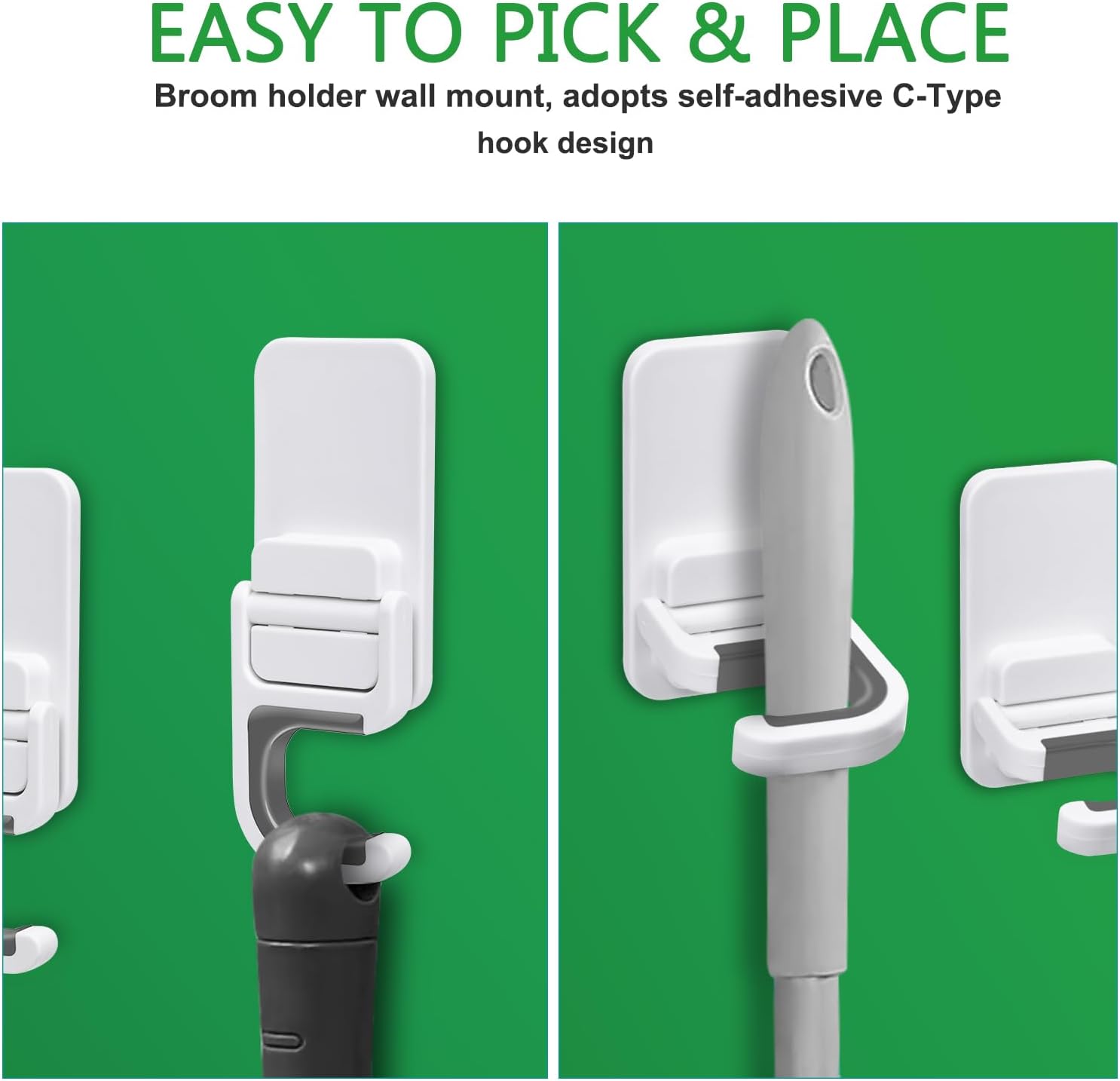 - ♥【C-Type Design and 180° Rotatable Clips】: C-Type Design let you pick and place mop and broom in one second with one hand. Features rotatable clips for versatile storage, making it easy to access and store your brooms, mops, and cleaning tools.