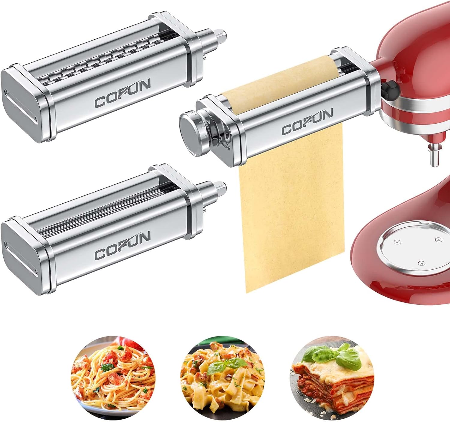Pasta Attachment for KitchenAid Stand Mixer, 3 Piece Pasta Making Kit Including Pasta Roller, Cutter for Authentic Spaghetti and Fettuccine Sheets, Durable Noodle Accessories by Cofun