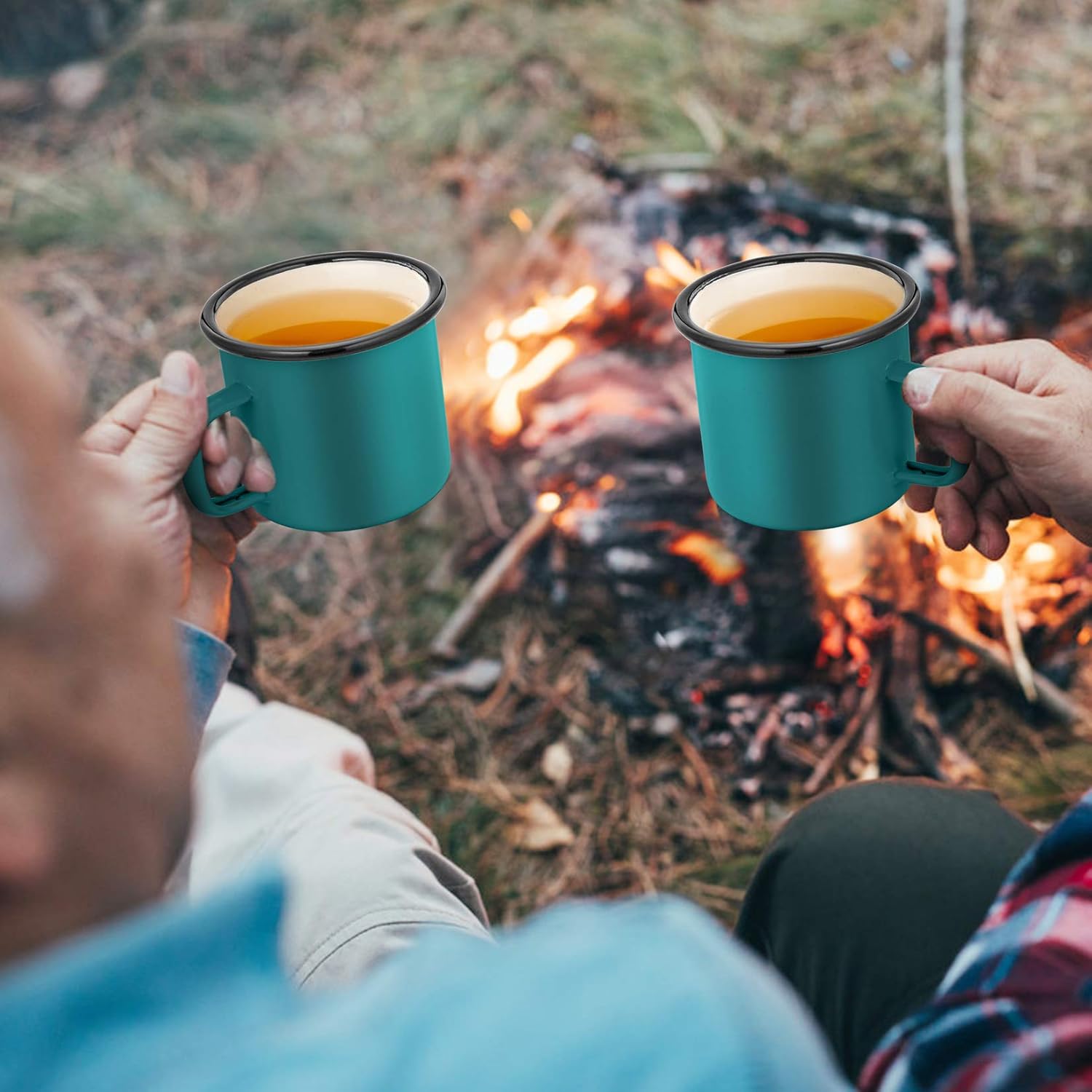 - FOOD SAFE - Our enamel camping mugs are made of high quality steel with enamel coating, No harmful substance leeching into your drink, Solid than the ceramic and glass, Reusable and environmentally-friendly than the paper cup, healthy for your daily use
