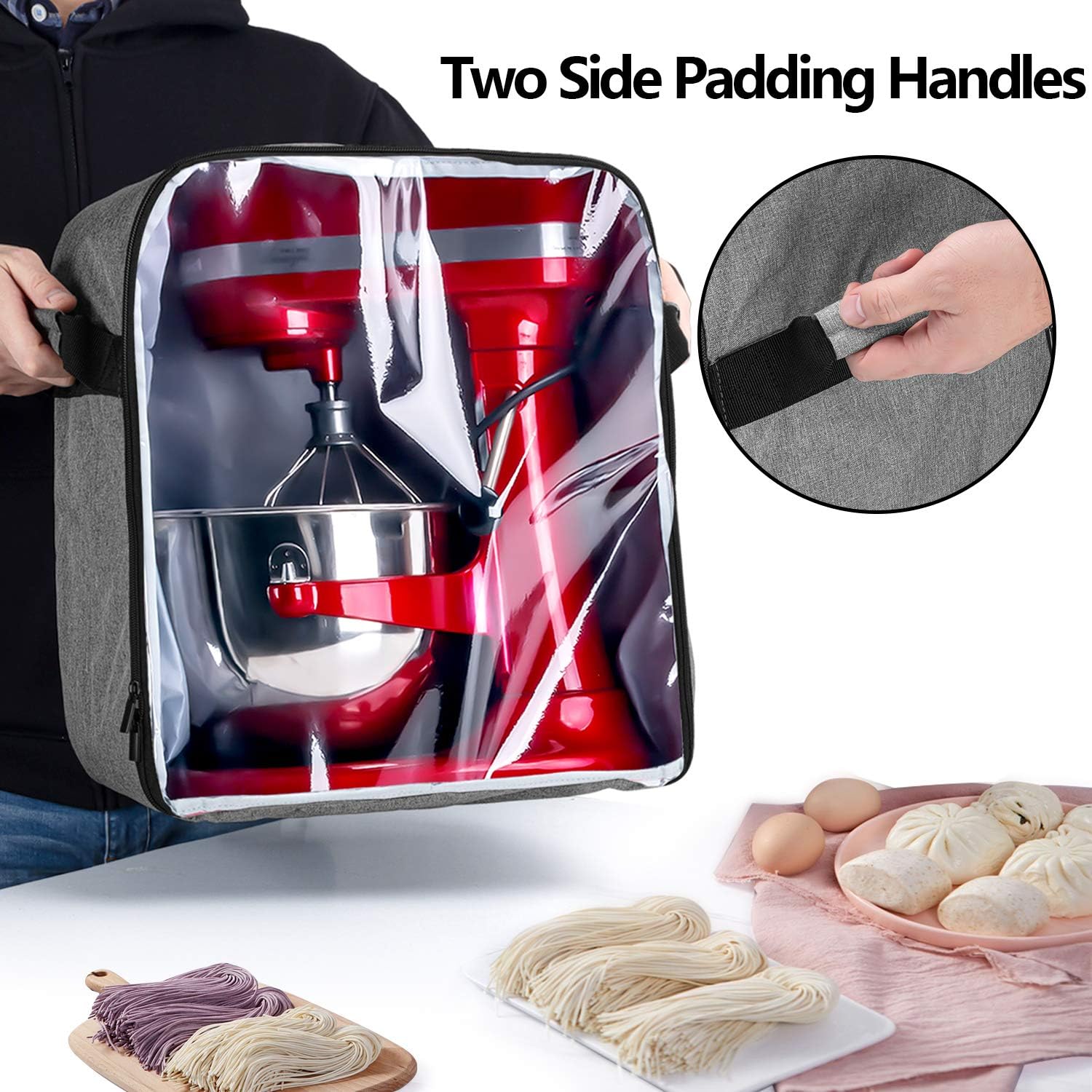 - SECURE AND PROTABLE: Come with a removable bottom padding pad, which helps reduce the risk of bumping. Two side padding handles for lifting the stand mixer easily.