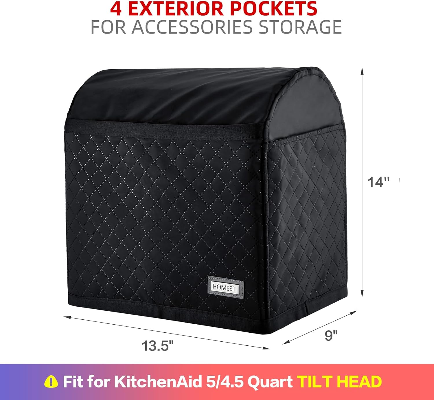 HOMEST Stand Mixer Quilted Dust Cover with Pockets Compatible with KitchenAid 5/4.5 Quart Tilt Head, Black(Patent Design)