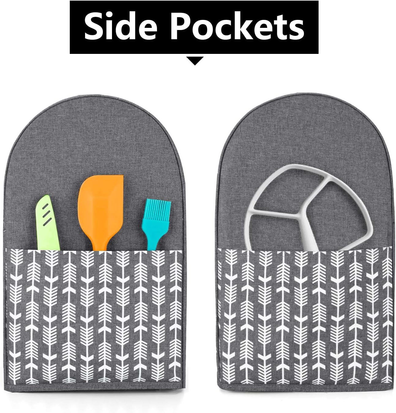Yarwo Stand Mixer Cover Compatible with 4.5 qt and All 5 qt KitchenAid Mixer, Protective Dust Cover with Top Handle and Pockets for Accessories, Gray with Arrow