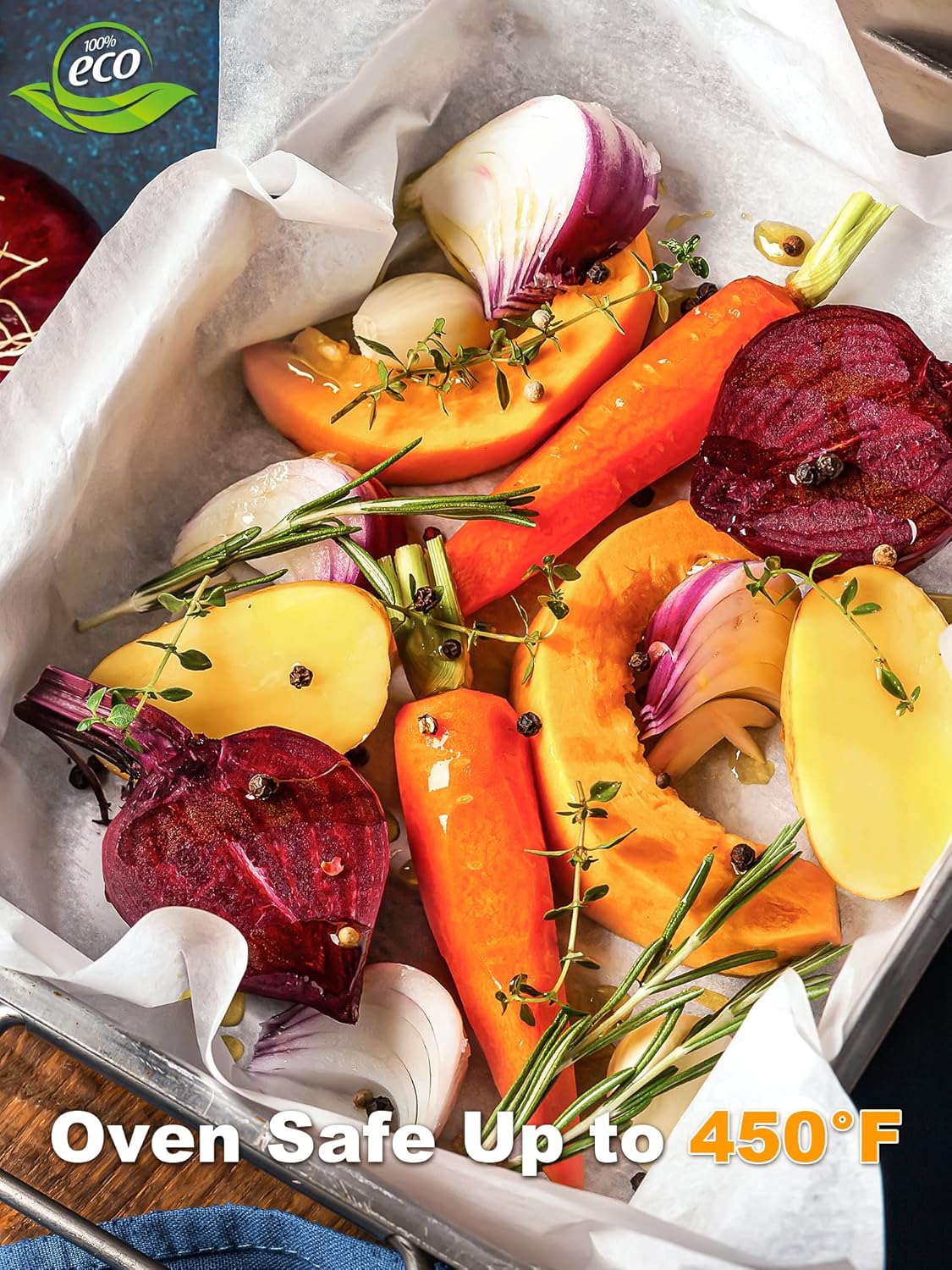 - Food Grade Baking Paper: Made of natural wood pulp, non-toxic, healthy and safe. Suitable for baking, grilling, frying, and steaming, you can use it for baking cookies, bread, meat, pizza, etc. Withstands temperatures up to 450℉, keeping your food the original taste