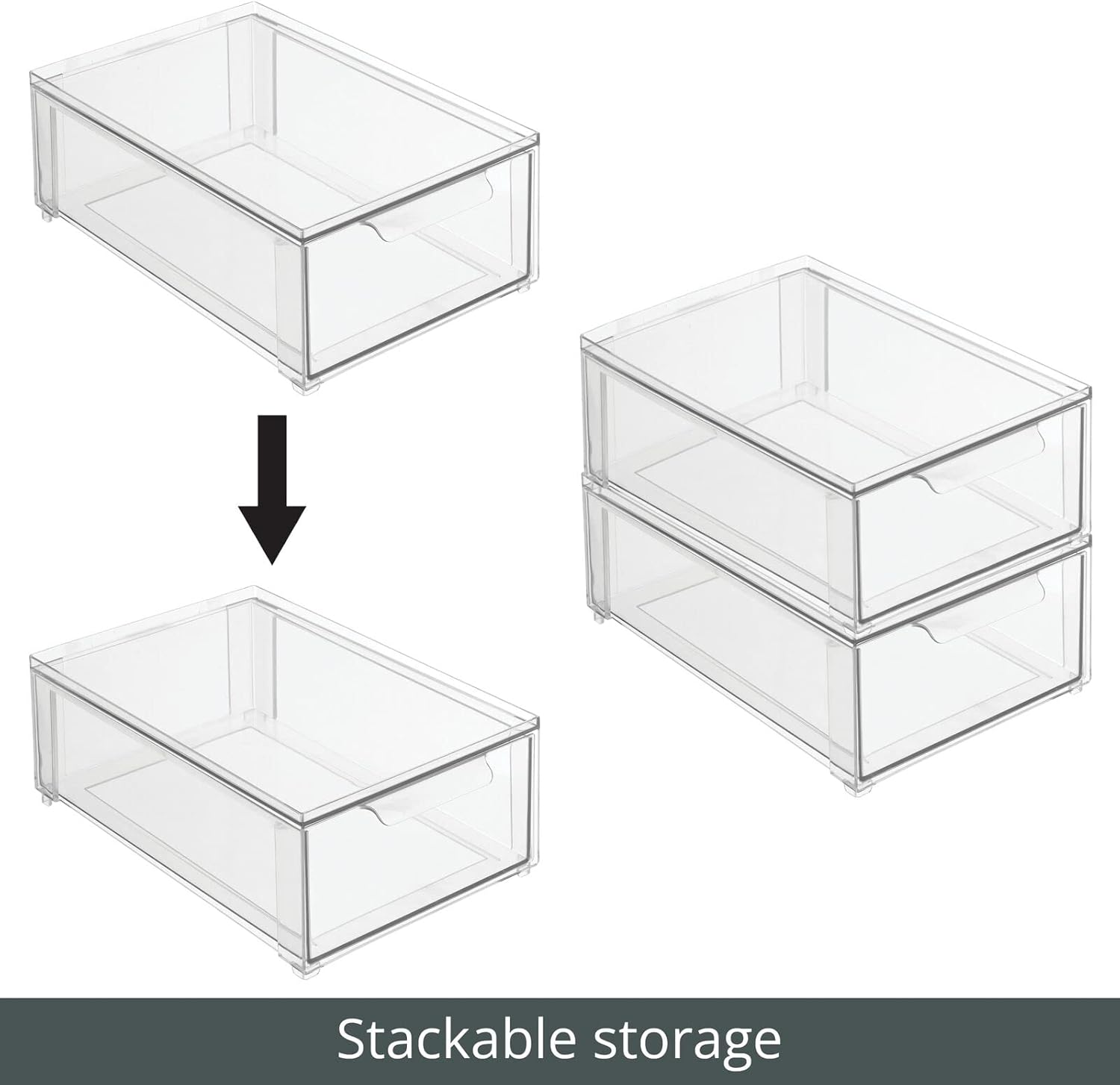 mDesign Plastic Closet Organizer Bin w/Pull Out Drawer - Shallow Stackable Storage for Closet - Organization for Shoes, Clothes, Bags, Totes, and Small Linens - Lumiere Collection - Clear